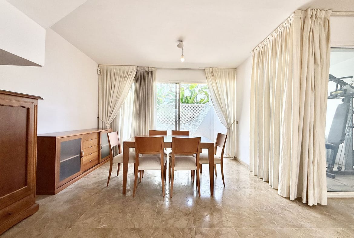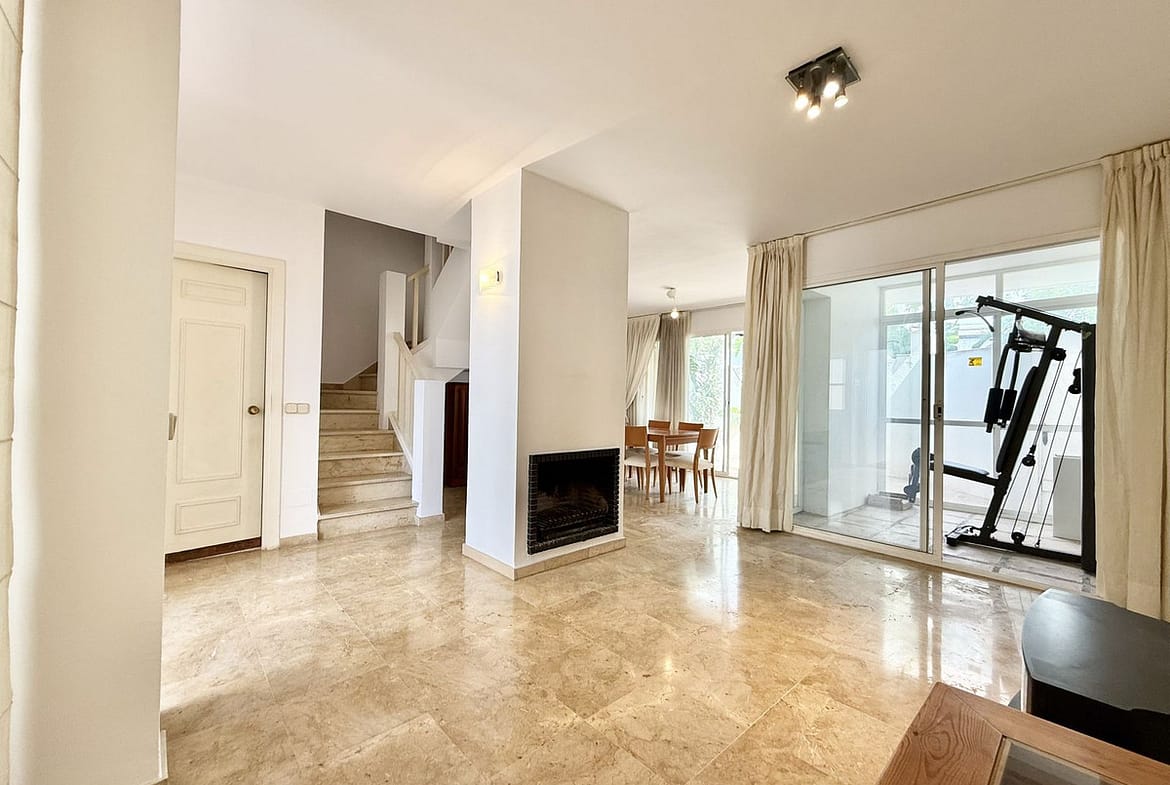 Townhouse, located in Nueva Andalucía, is just a short walk from the beach in Puerto Banus and only a minute's drive from the shopping conveniences in Marbella. Situated in Altos del Rodeo, it offers exceptional potential, blending Marbella's classic Mediterranean style in a south and north facing property that is perfect for a full renovation. The property is also conveniently close to Puerto Banús, famous for its luxury boutiques and style-