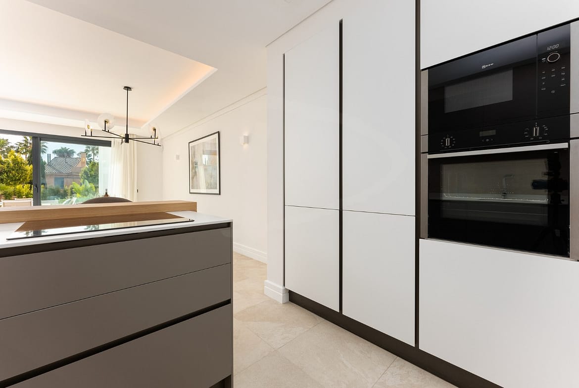 This beautiful three bedroom townhouse is situated in the heart of Nueva Andalucía and offers a serene residential experience with its closed residential complex featuring security and surveillance. Nestled in a tranquil environment surrounded by nature, the spacious layout of the houses provides ample privacy, complemented by a large communal garden and pool area.