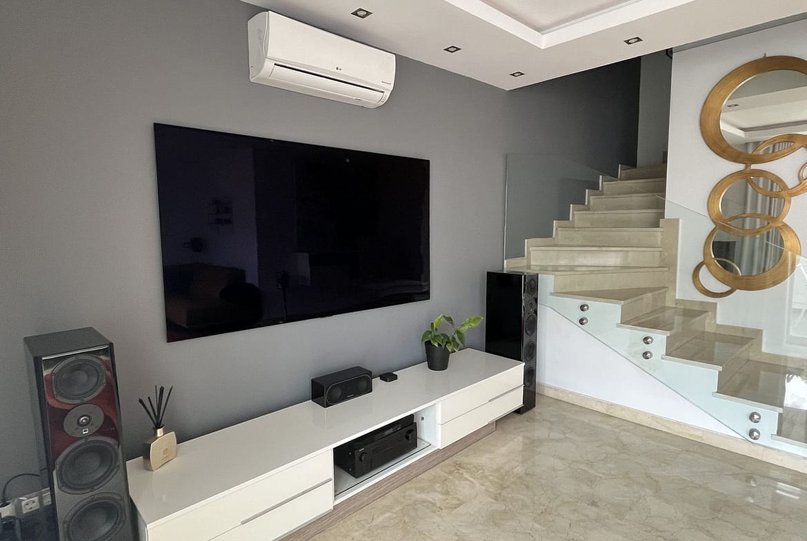 – Impressive Dolby Atmos 9-speaker home cinema surround sound system in the living room