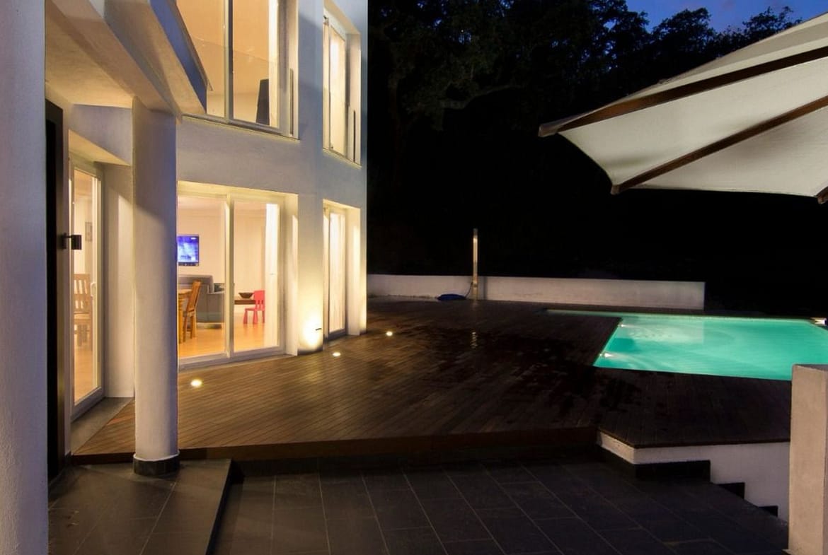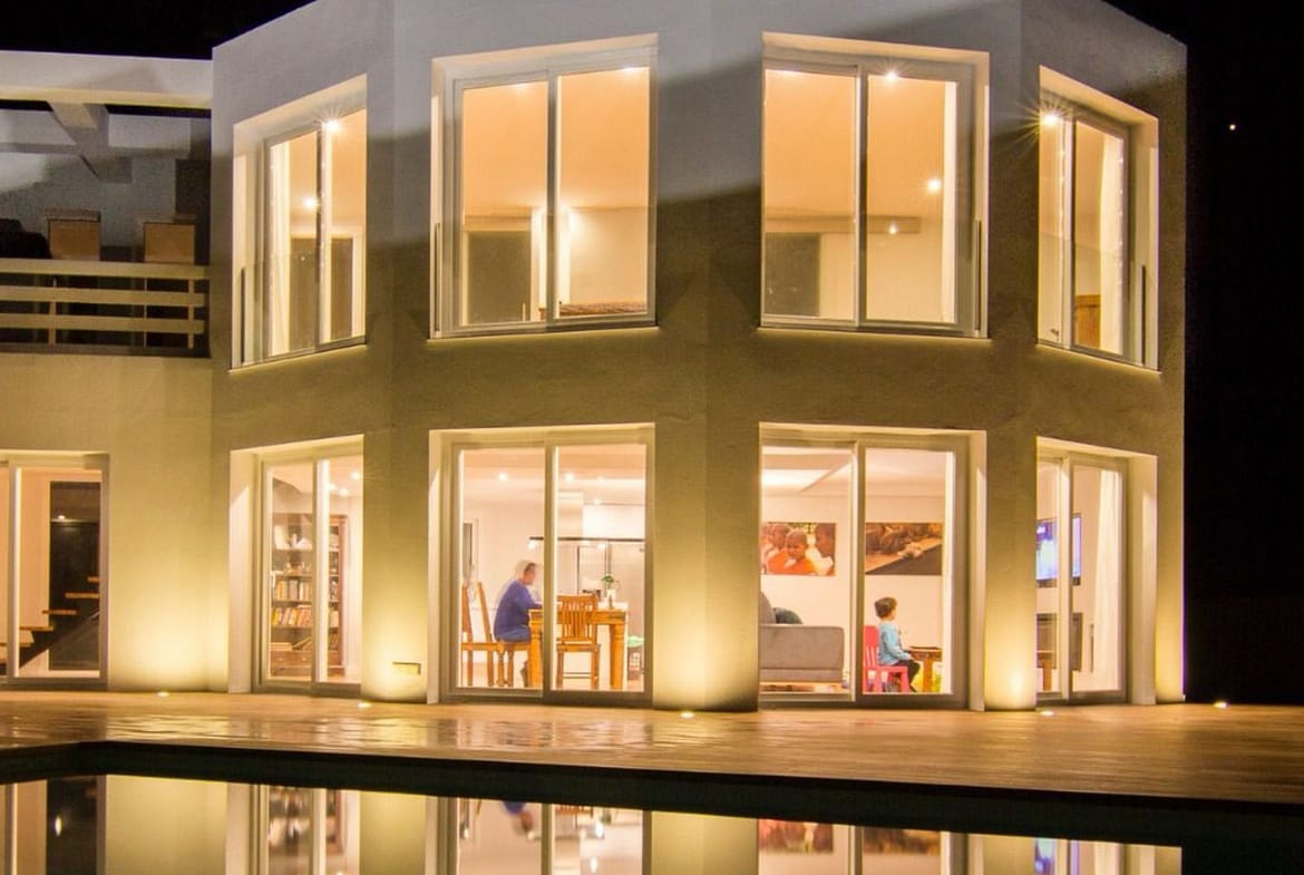 The villa has been designed with light, space, and comfort in mind. Its open-plan concept connects the living room, dining area, and kitchen into one harmonious space filled with natural light thanks to large floor-to-ceiling windows. The elegant modern kitchen is fully equipped with high-end appliances and sleek finishes, opening directly to the dining area — perfect for family gatherings or entertaining guests.