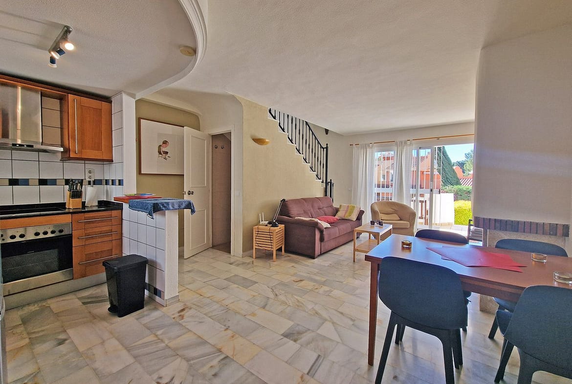 The house offers convenient parking directly in front of the entrance and is located within a well-maintained residential complex featuring a communal swimming pool, gardens, and green areas, all set in a very peaceful and residential environment.