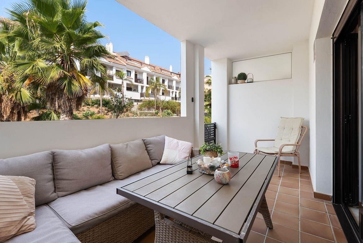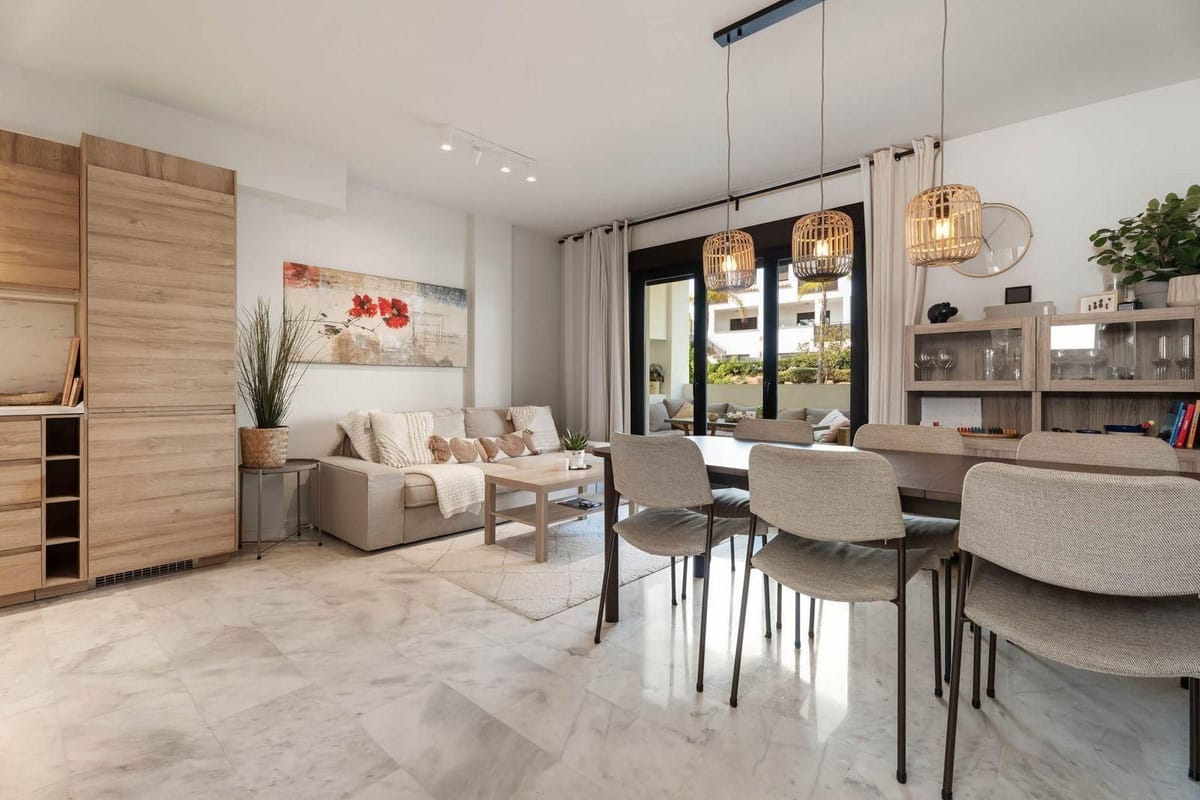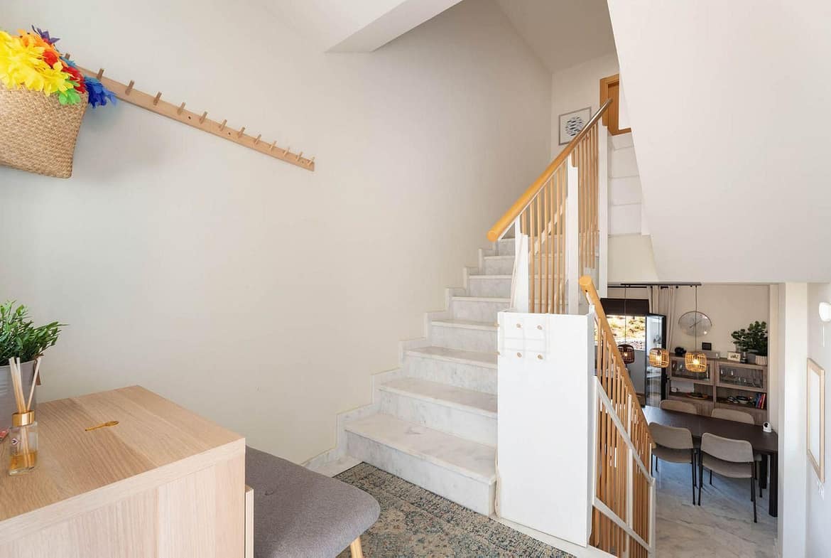 The main living area offers a bright lounge with access to a spacious terrace, perfect for outdoor dining, while the entrance terrace is ideal for breakfast or enjoying the morning sun.