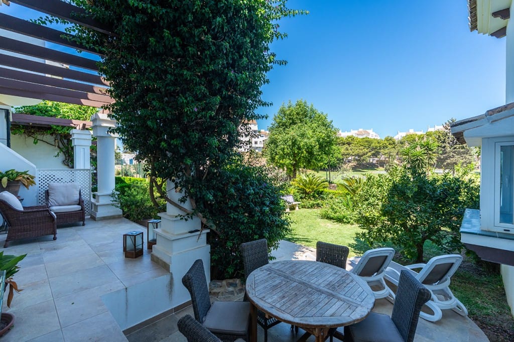 Beautiful townhouse in a small complex in Riviera del Sol in Mijas-Costa frontline Golf. The house offers on the main level a fully equipped modern kitchen, a guest toilet, storage, one bedroom with en-suite bathroom and a large dining and living room with fireplace and with access to the private terrace with private garden. On the first floor there are two further bedrooms with en-suite bathrooms and a lovely summer terrace. There is also a roof terrace with sun all day. In the basement there is huge area that could be converted into a cinema, gym, more bedrooms, etc. In front of the house and in the complex there is a private parking space.