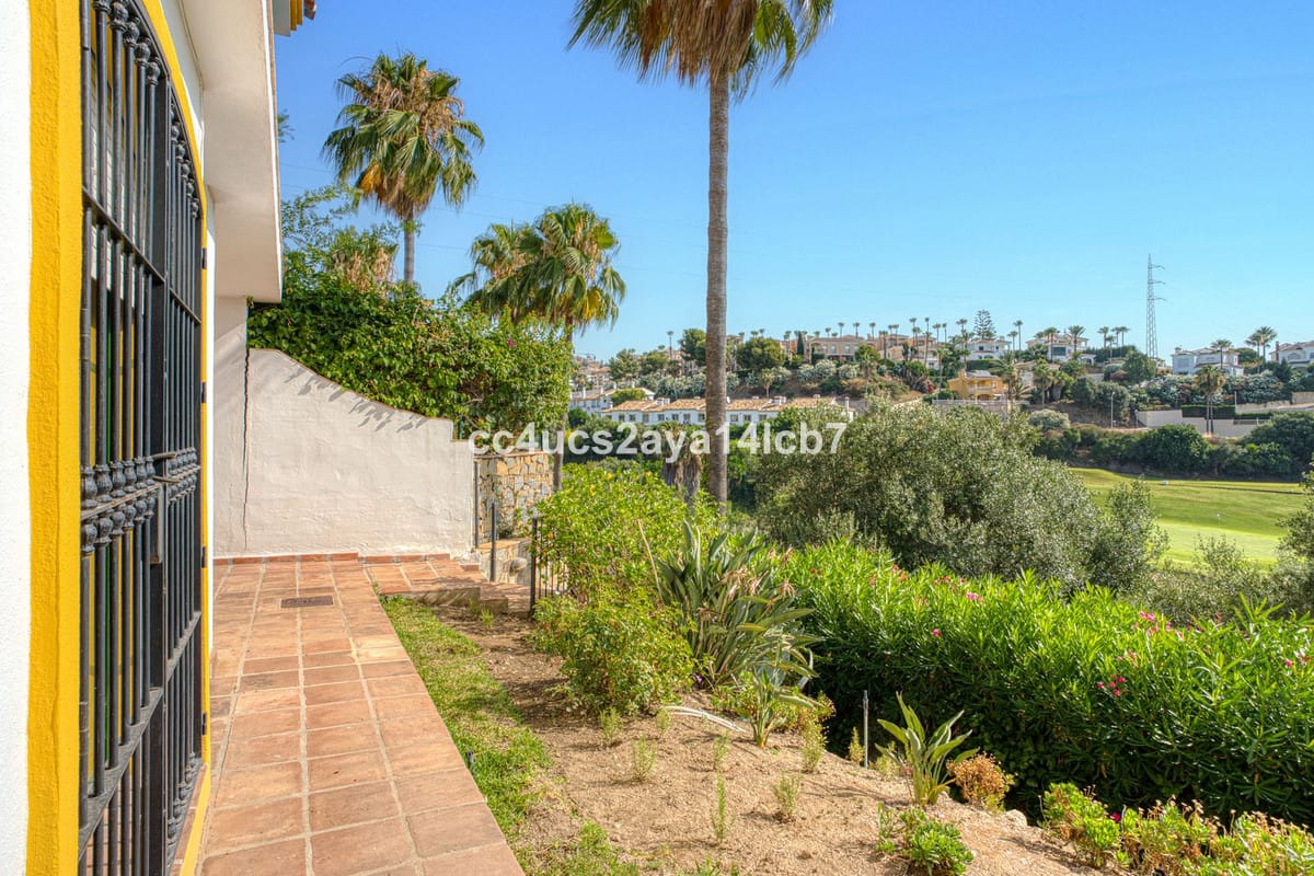 Nestled within an exclusive gated community of just four residences, this semi-detached villa offers unparalleled tranquillity and panoramic views of the golf course. Accessed via a shared electric gate and private driveway, the property boasts a communal swimming pool, providing a serene setting for relaxation.