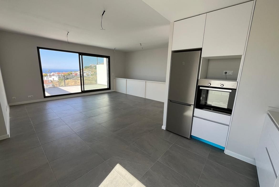 You enter the upper floor of the house, where you have an entrance hall and a guest toilet and then you go into the kitchen and living room and from the living room you have a fantastic panoramic view of the sea. In extension of the living room there is a 24m2 terrace that is southwest facing, so with lots of sun.