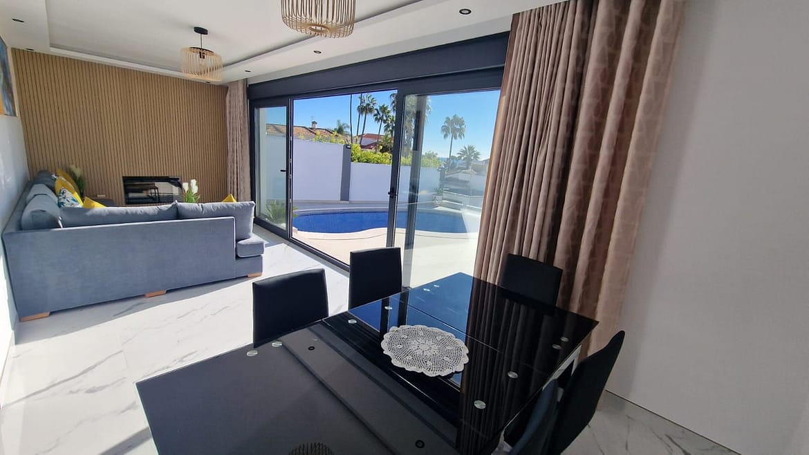 Discover this spectacular single-story villa, located in the prestigious Riviera area, just steps from the beach. With 272 m² of built area and a plot of over 600 m² of easy maintenance, this home is perfect for those seeking comfort and style. Enjoy stunning sea views from the spacious outdoor area, ideal for barbecues and gatherings with friends and family. The house has 3 spacious bedrooms, each with built-in wardrobes, and 3 full bathrooms that offer privacy and comfort.
