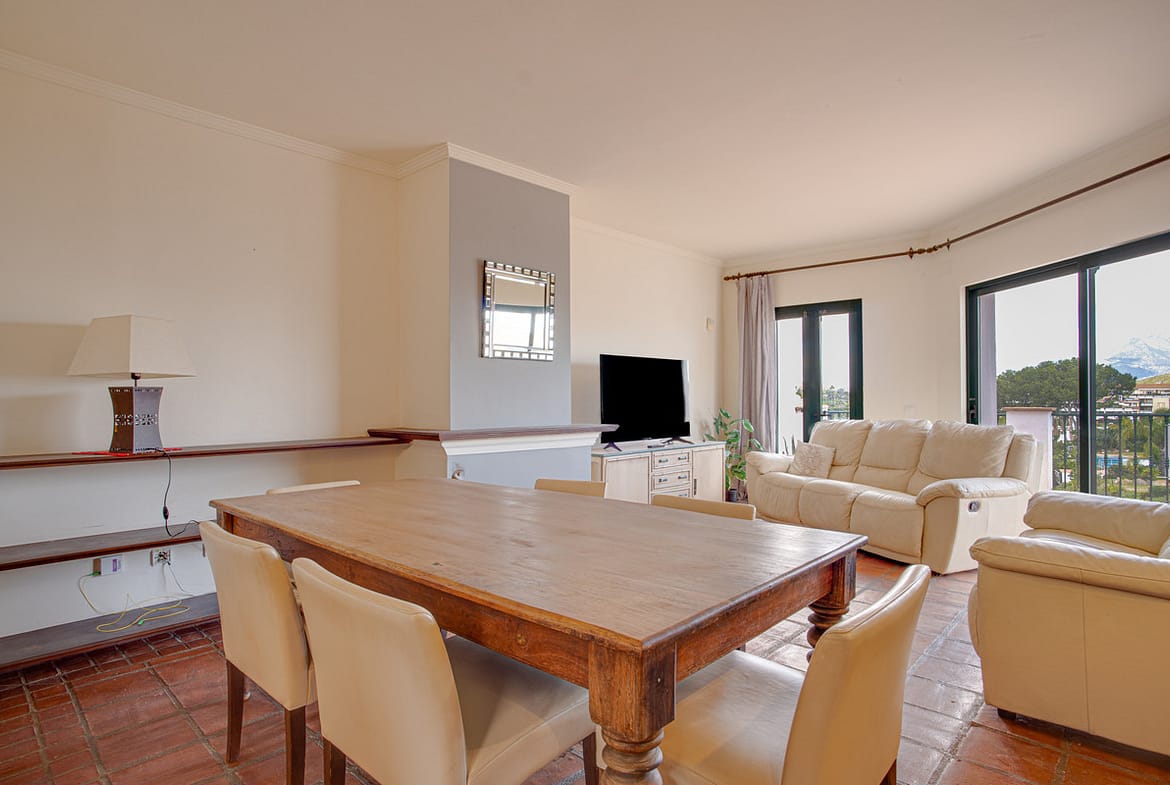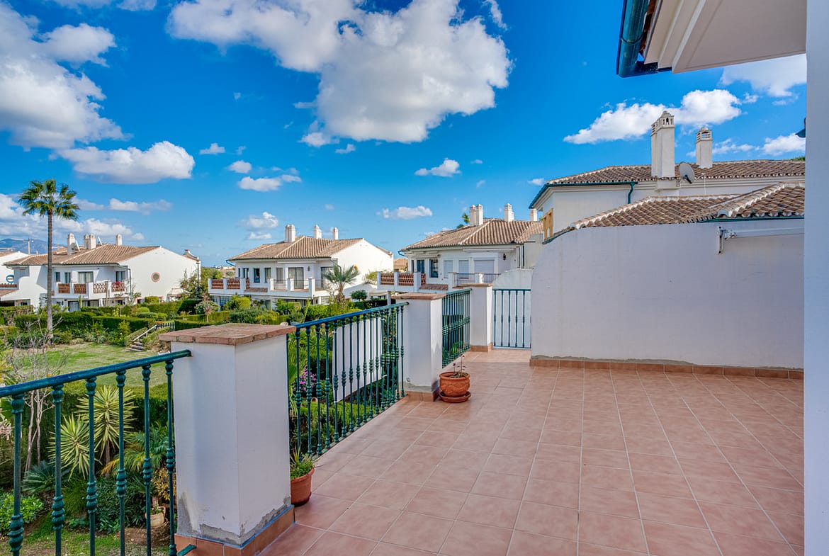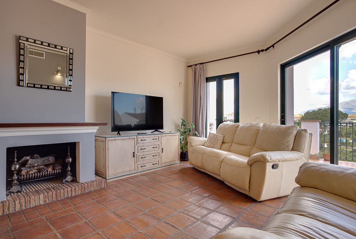 Lovely three-bedroom semi detached Villa in a gated community of Riviera Del Sol, the community has well kept gardens, two communal swimming pools, one of them being heated, and is a short walk to the beach and local amenities. The property has an open plan living and dining area with a built-in fireplace and access to the spacious terrace with views to the mountains, golf and pool; fully fitted kitchen; and guest toilet. The lower-level leads to the master suite with access to the private garden; two guest suites; and access to the private double garage. Other features include hot and cold air conditioning, electric shutters and fitted wardrobes. A great reform opportunity in a residential community.