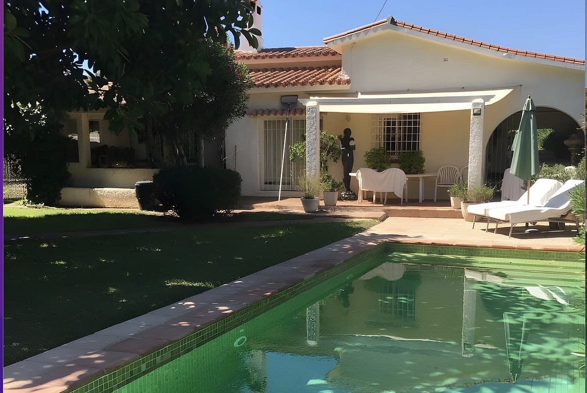 Perfectly located just a few meters from the beach in Linda Vista beach side and the famous restaurant “El Ancla”, we find this villa built on one floor enjoying the sun all day thanks to its South orientation. It has a very careful garden which gives you total privacy, with a nice pool in addition to an outdoor parking space. Located on a quiet little street, this property has infinite possibilities for anyone who wants to renew it. Living room with fireplace, fully equipped kitchen, laundry and 3 bedrooms with two bathrooms. Covered porch.