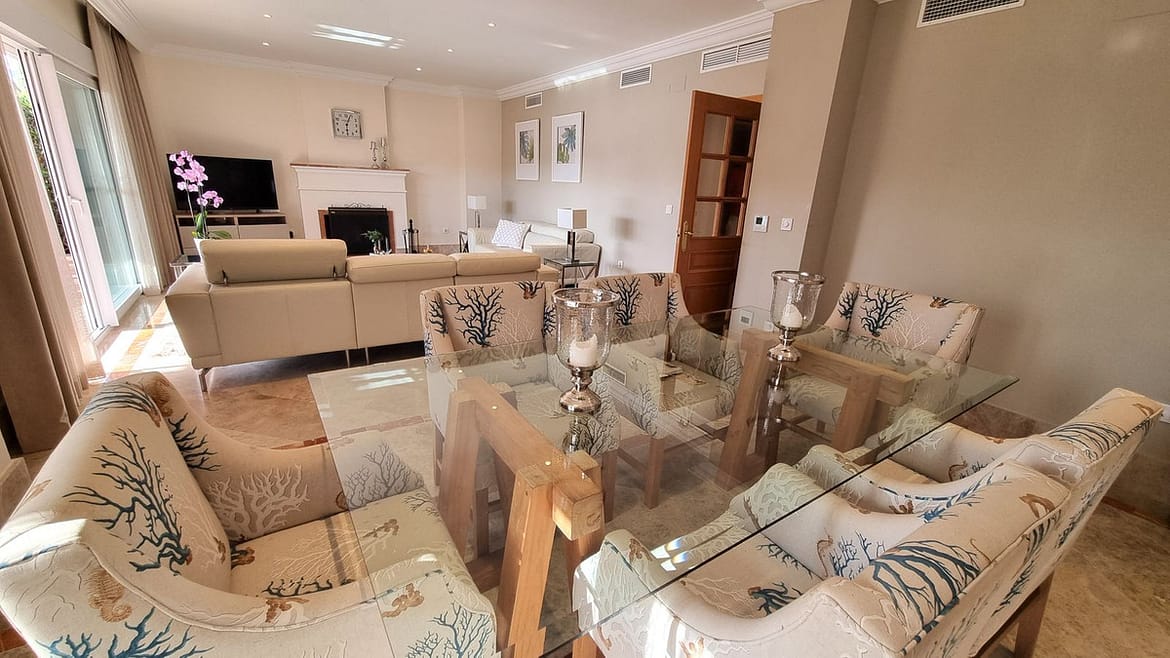 Exquisite semi-detached villa very well furnished and in very good condition, situated in the well known urbanization of Santa Clara Golf. The complex is completely gated, with surveillance cameras and surrounded by the golf course, which guarantees tranquillity and security.