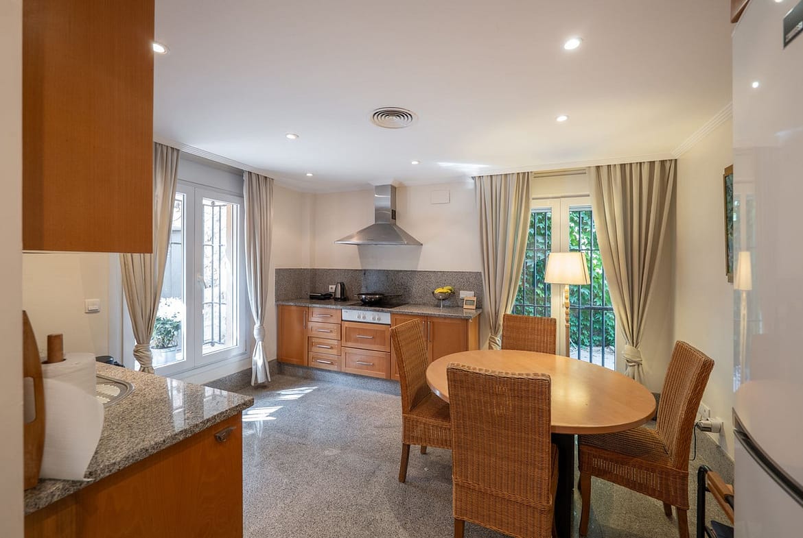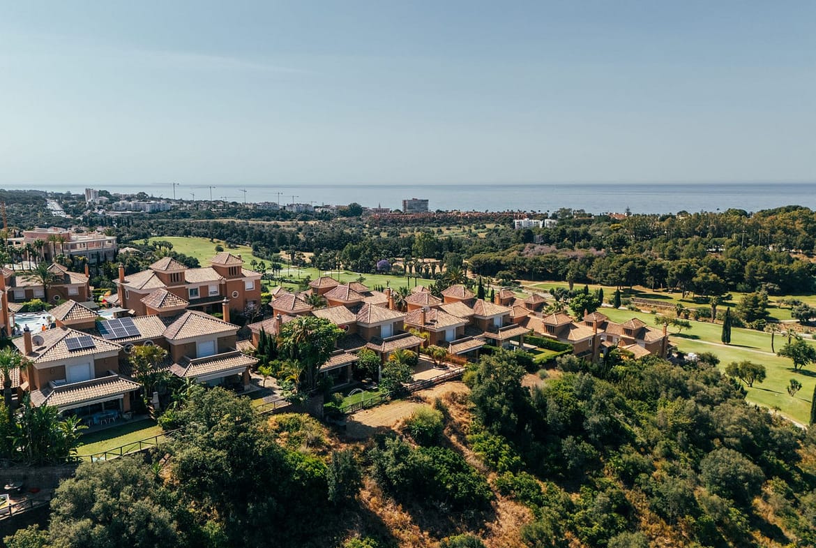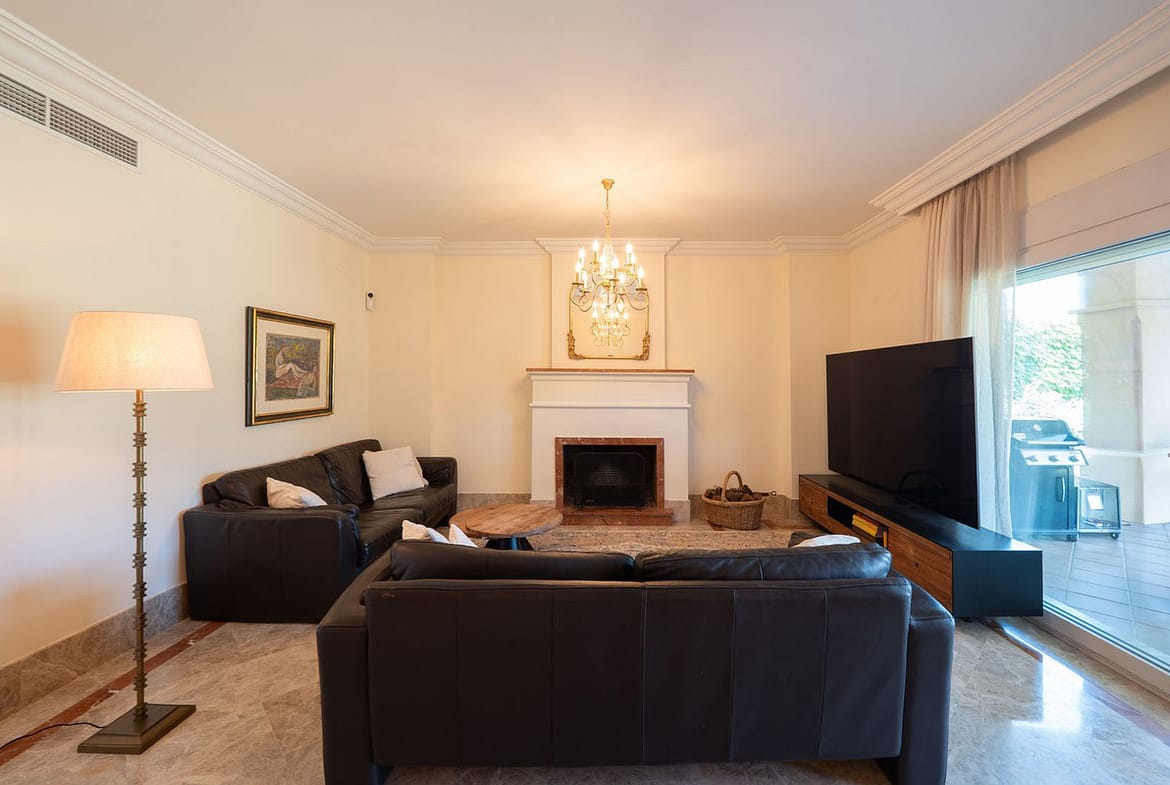 Located within the gated and secure community of Santa Clara, this townhouse enjoys a quiet residential setting surrounded by landscaped gardens and a golf course, with open views towards the Mediterranean Sea. The area offers privacy and greenery while remaining just a short drive from Marbella centre, beaches, and all essential services.