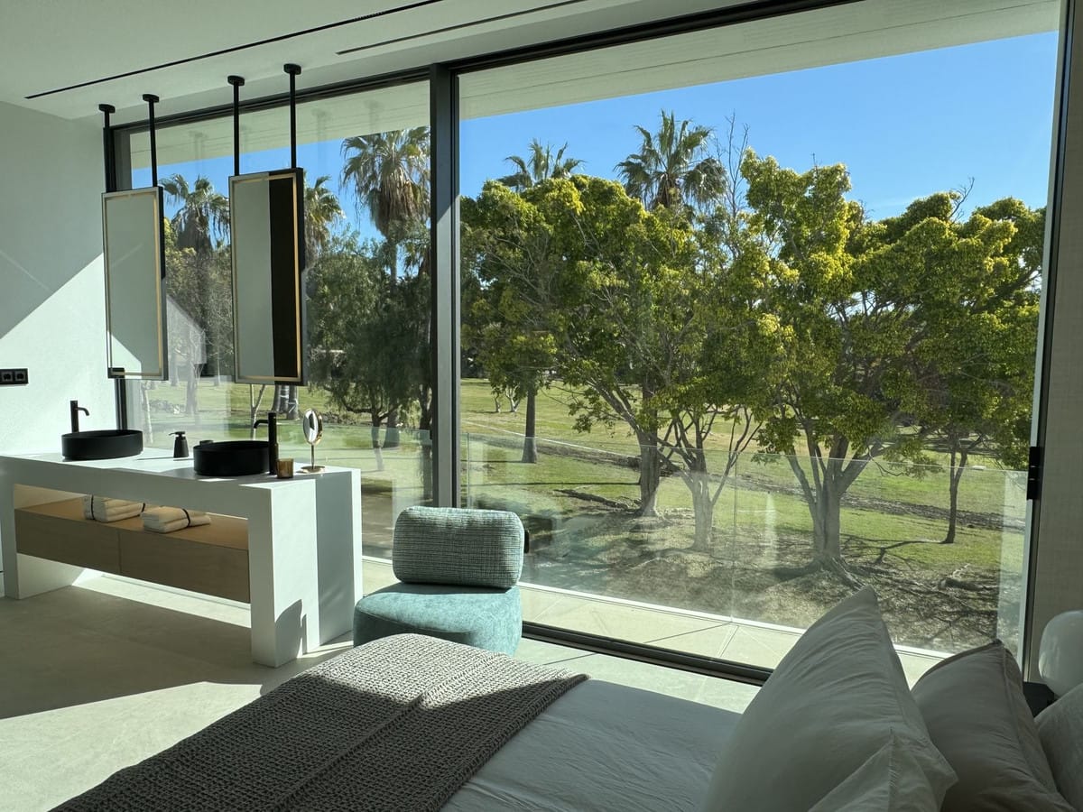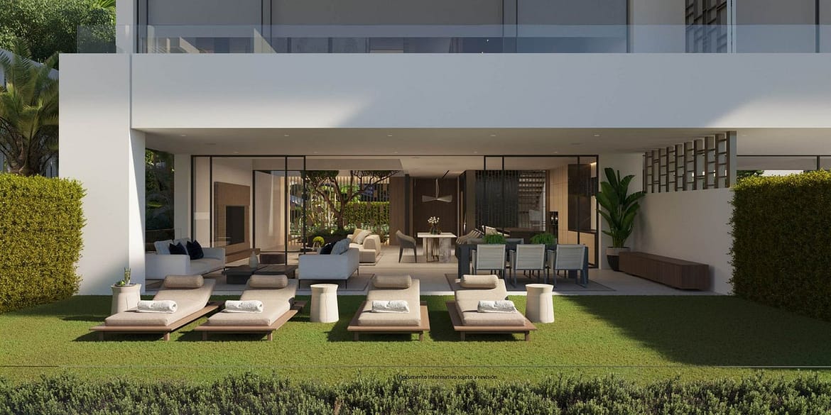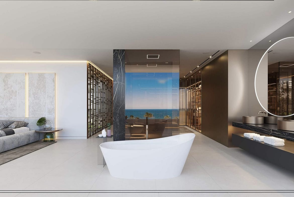 Surrounded with high-end properties of the Golden Mile, this perfectly executed contemporary property is just 250 meters away from the sandy beach and an array of amenities, well-known restaurants and bars, 5-star iconic hotels like Puente Romano, designer boutiques, shops and supermarkets.