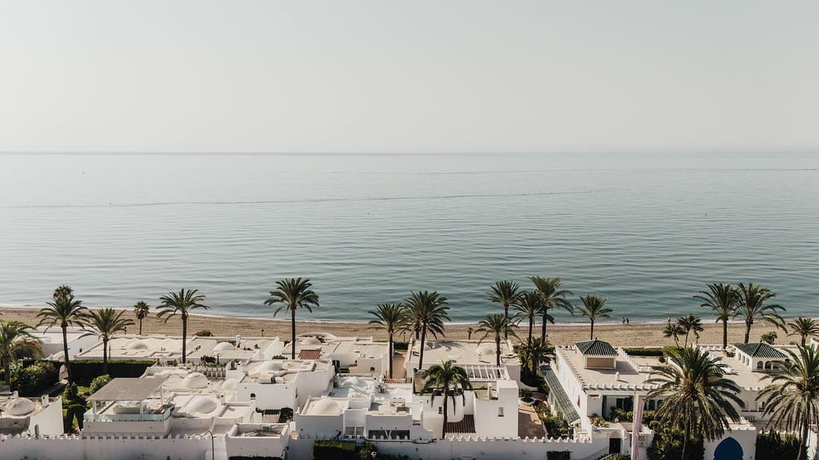 Upstairs you’ll find two more bedroom suites, both with panoramic sea views. The principal suite offers a Mediterranean ambiance with en suite bathroom and a chic walk-in closet, while the second suite opens onto a spacious terrace with lounge and wet bar – the perfect setting to enjoy Marbella’s sunsets. With direct access from the community to the beachfront promenade, you can stroll to PuenteRomano, Marbella Club, or even Puerto Banús. Fine dining, beach clubs, and world-classamenities are all within walking distance.
