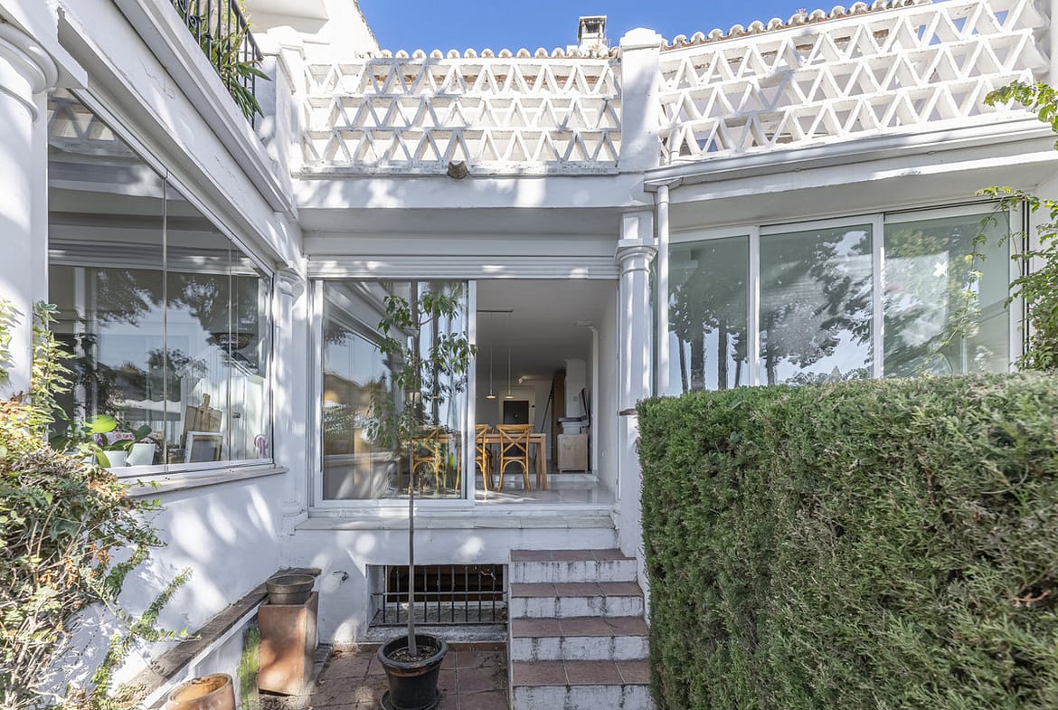 Montepiedra is one of the most sought-after gated communities in Nagüeles, on the Golden Mile. With architecture inspired by Mediterranean villages—white townhouses, balconies, terraces, and traditional tile roofs—the development stands out for its charm and meticulous maintenance.