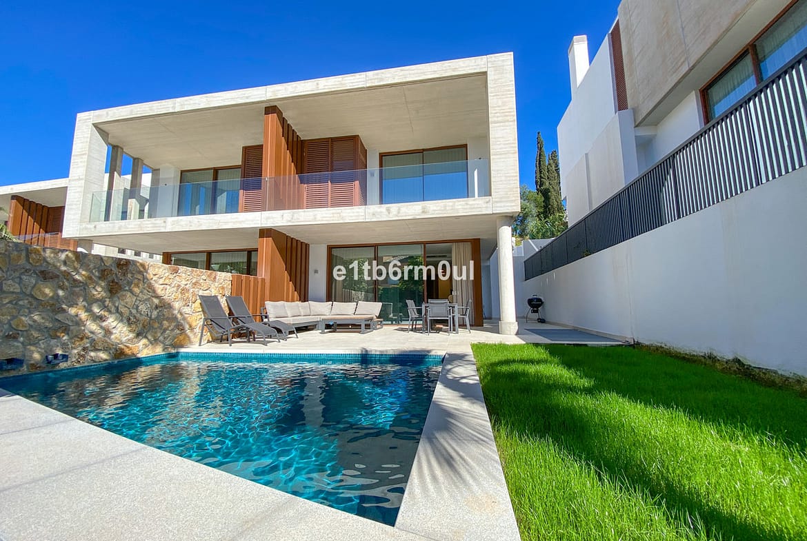 New semi detached villa in the heart of the Golden Mile, Marbella only 300m from the beach and the Puente Romano. Five-minute drive from Marbella Centre and Puerto Banus. 24-hour security communal pool, gym and spa. Perfect opportunity to own a three bed ( 4th in the basement ) three bath, brand new semi-detached house with private plunge pool. Open plan kitchen, living room leading out to private garden on the ground floor with guest WC. 1st floor hosts three bedrooms , one en-suite, two sharing a bathroom. On the 2nd floor a magnificent solarium with views to the concha mountain. Basement floor living room, 4th bedroom and bathroom. Two car parking spaces with direct access to the house and storage space are also included.