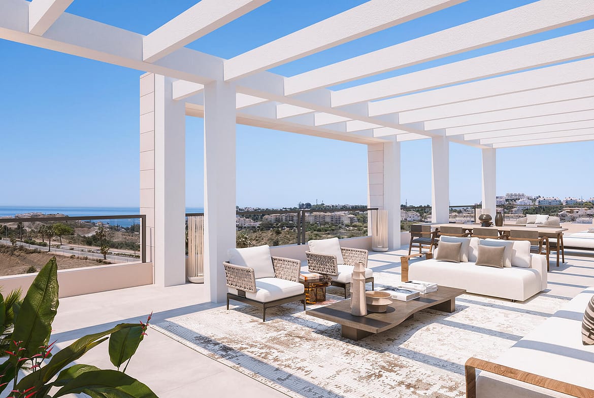 New residential in Mijas Costa, Malaga. The private urbanization has 54 homes with 2 and 3 bedrooms distributed in 3 blocks, 3 stories high, including penthouses with large terraces that will enjoy magnificent views of the golf course. Very bright homes with spacious living rooms with integrated kitchens, contemporary design and created to enjoy privacy and proximity to golf. The common areas have swimming pools and well-kept gardens to enjoy the wonderful atmosphere of the area.