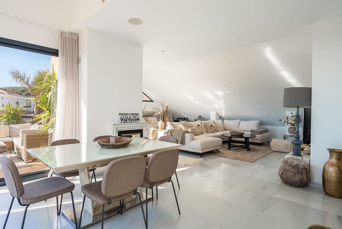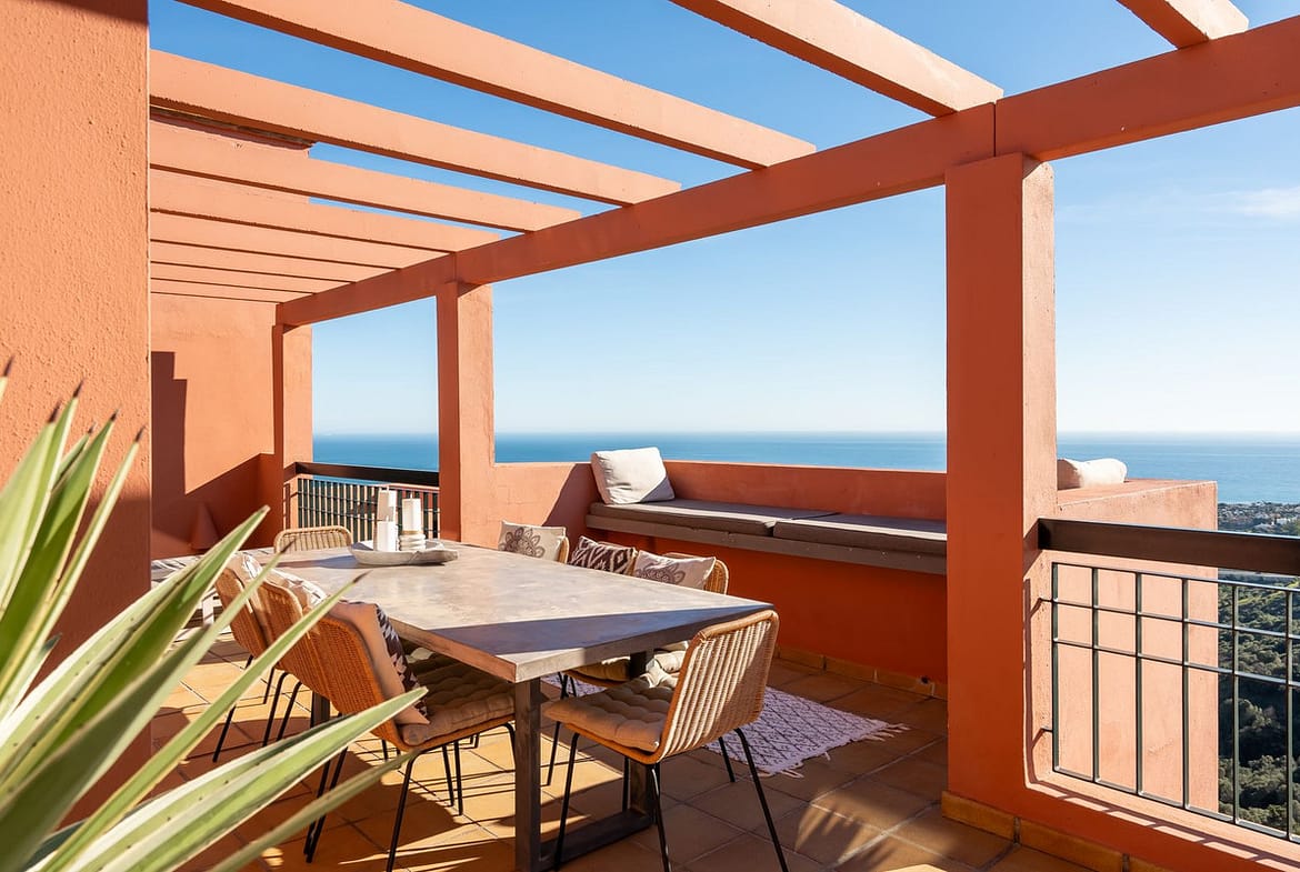 An exceptional Duplex Penthouse in Las Cascadas, offering panoramic views, full privacy, and extraordinary outdoor space. Originally two apartments combined into one expansive residence, this home delivers the feeling of a private villa in the sky.