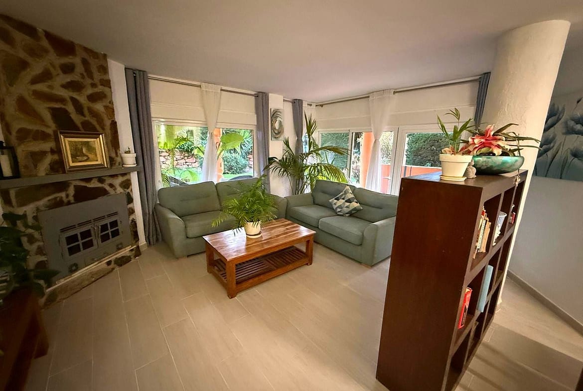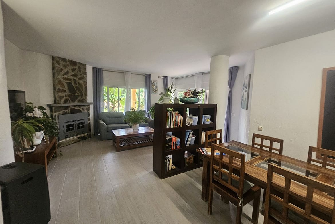 A large apartment in Calahonda, originally a spacious three-bedroom, three-bathroom unit, featuring a huge living room with a fireplace, a separate dining room, a large kitchen with a utility room, and a magnificent terrace.