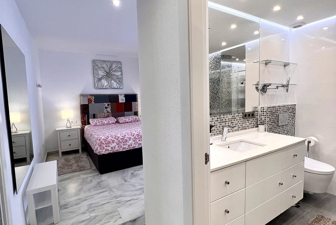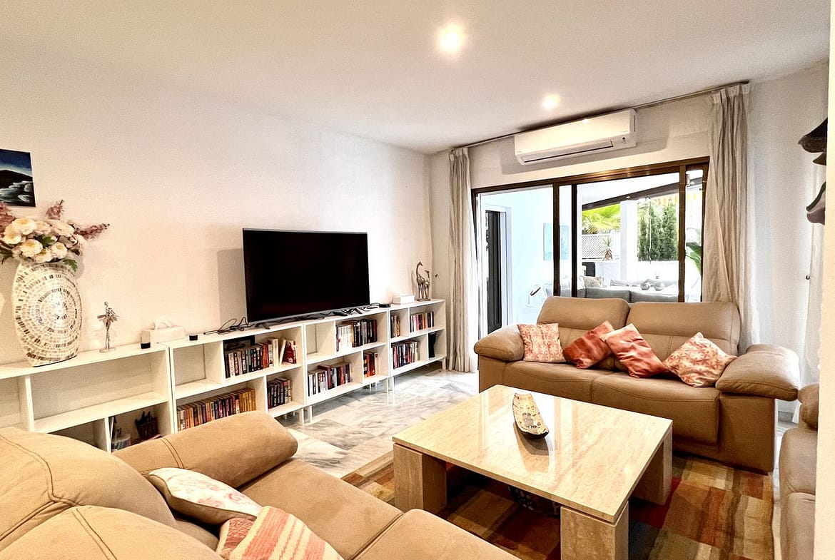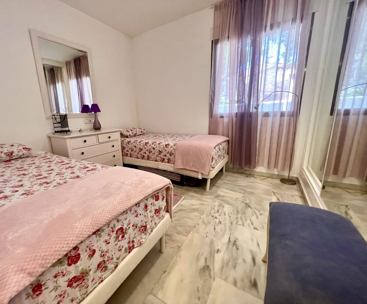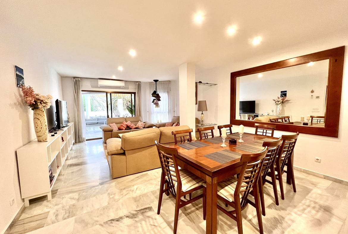Ideal holiday acommodation for families!! Spacious 4 bedroom 4 bathroom elevated groundfloor apartment located only 1 min walk to the best beaches in Marbella. This open plan apartment is fully equipped with everything you need for a perfect holiday and it has a large terrace.