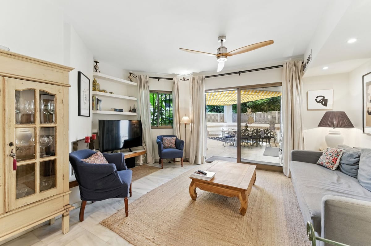 Experience unparalleled beachfront living with this beautiful groundfloor apartment, offering 140 m² of indoor space and an additional 55 m² roof terrace in a prestigious apartment complex right next to the beach. Immerse yourself in the award-winning garden, adorned with exotic plants, tranquil streams, and fountains, and enjoy access to two large pools and a children's pools.