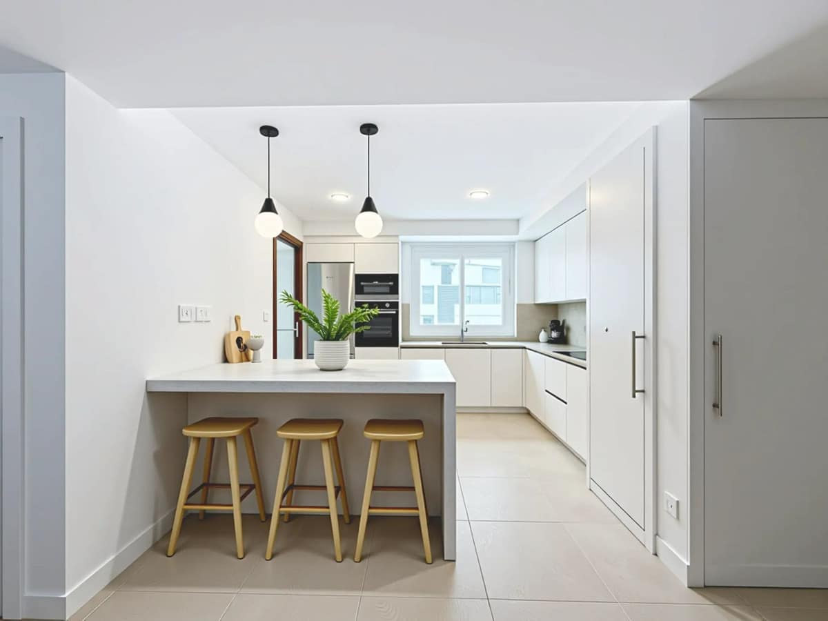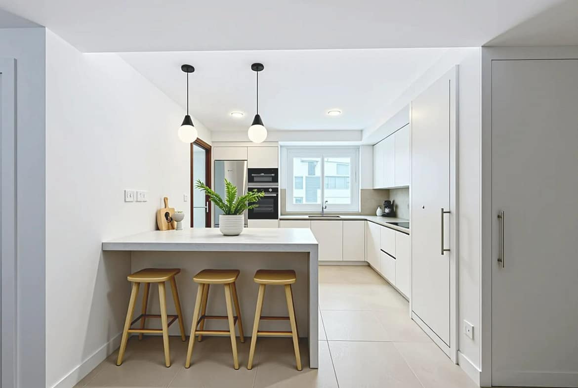 Contemporary countertops and stylish upper and lower cabinets
