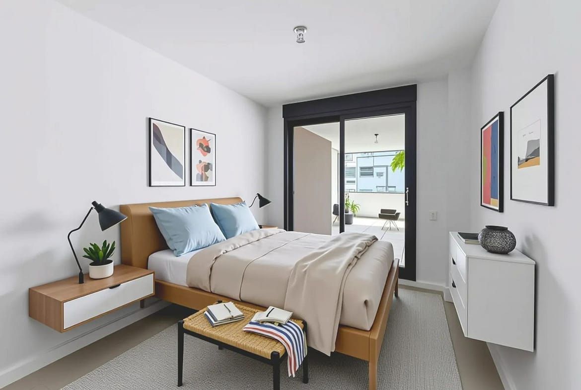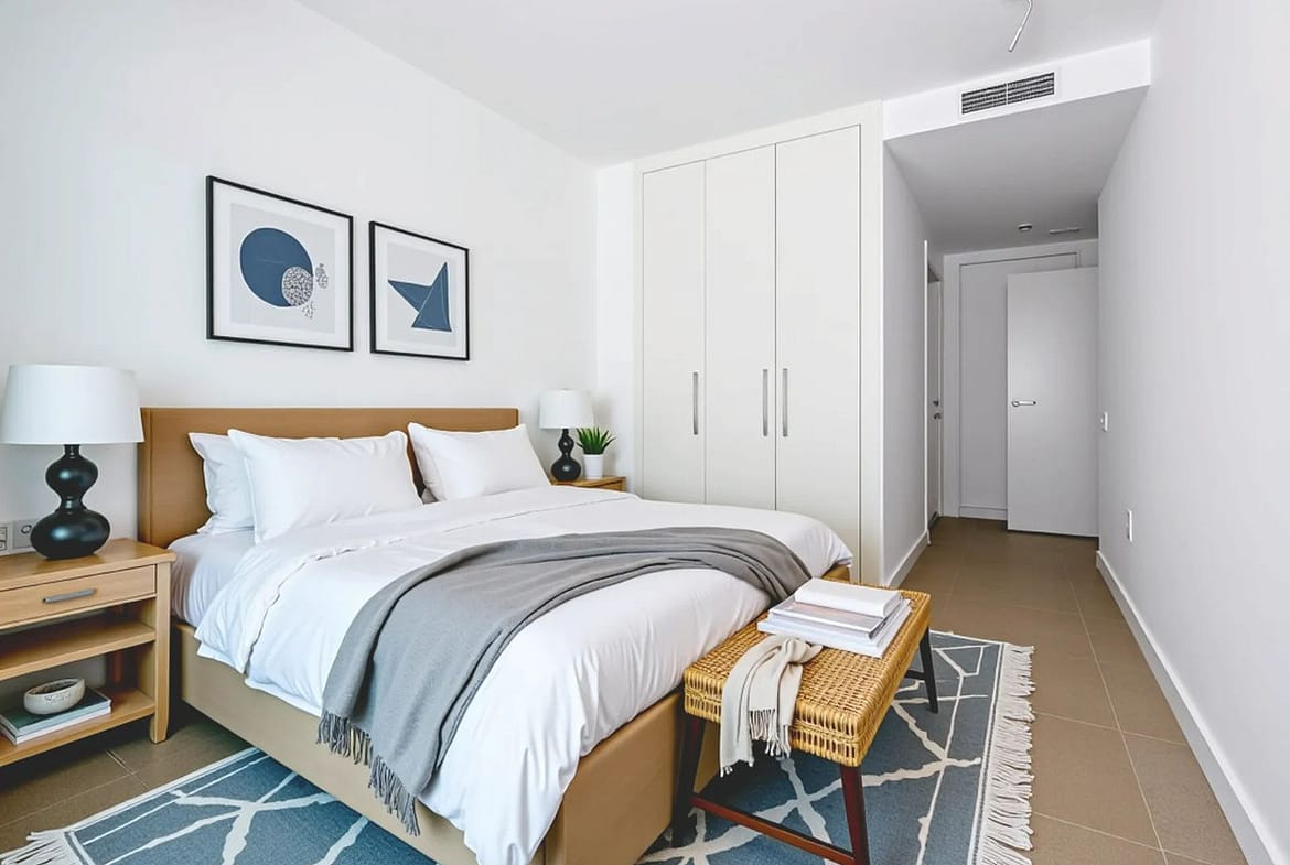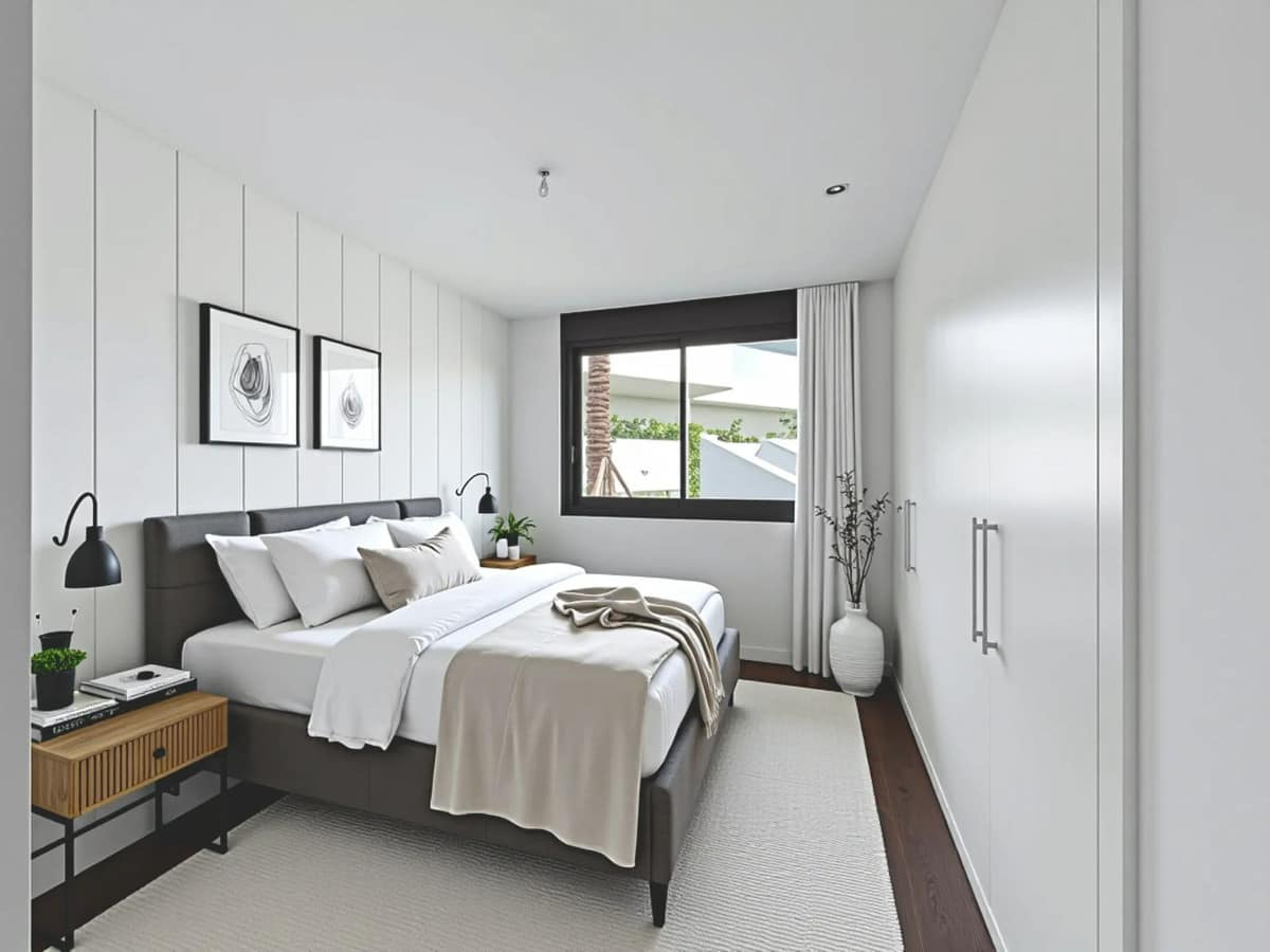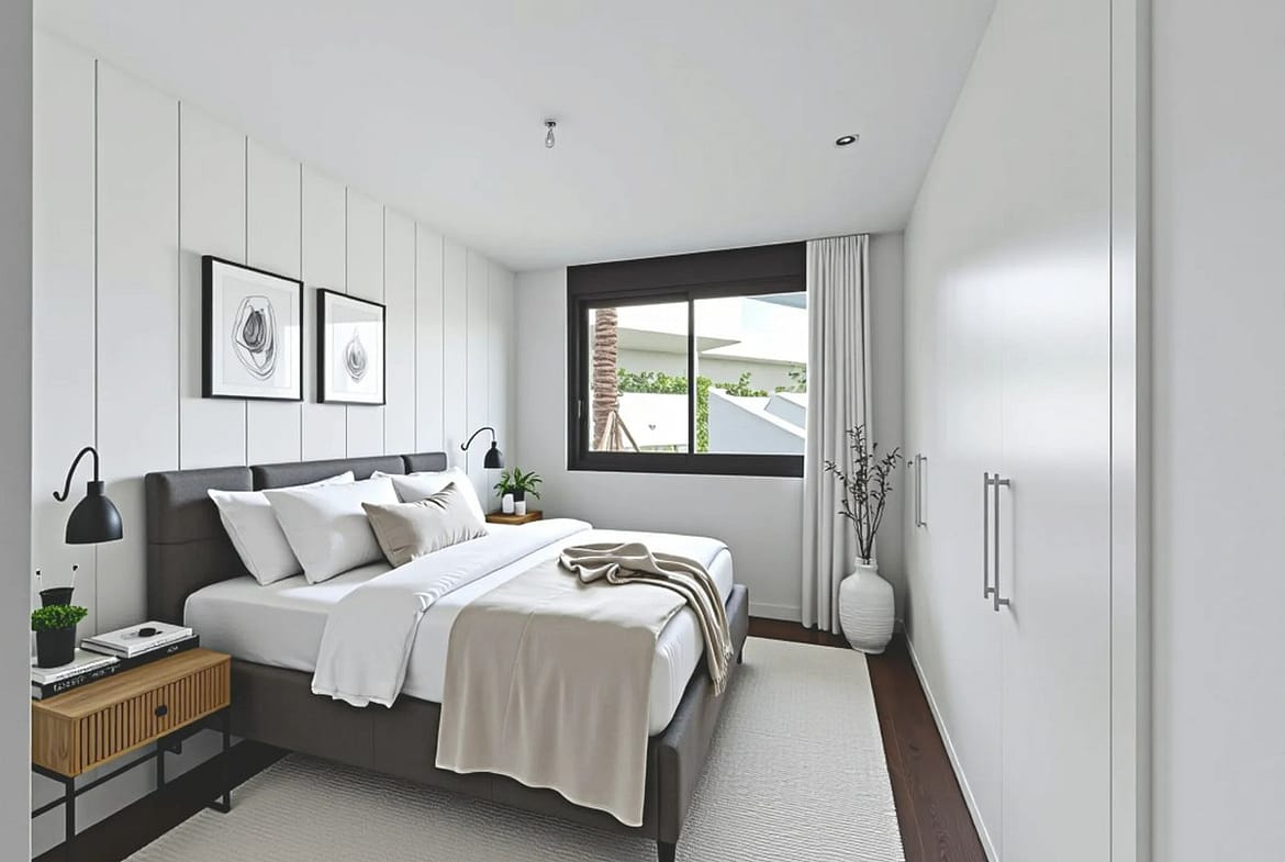 4 spacious bedrooms with fitted wardrobes, white lacquered finish and modular interior