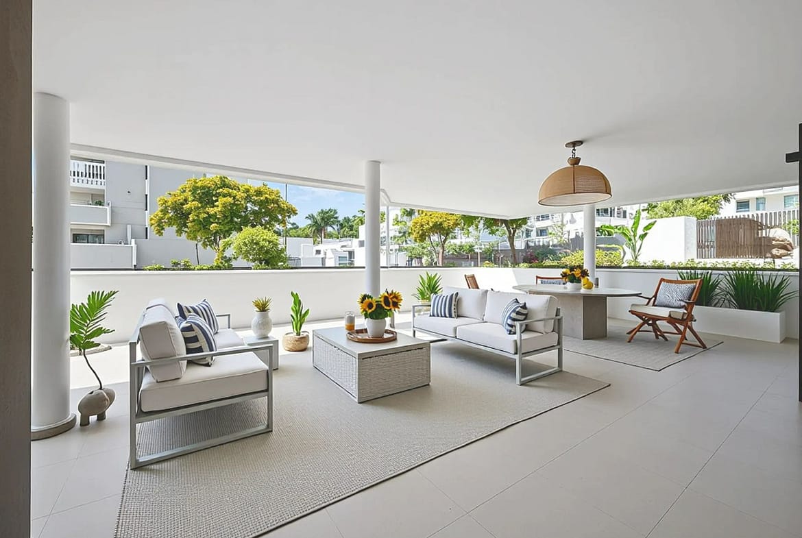 Elegant and modern elevated ground-floor apartment with a large private terrace of 90 m² and partial sea views. Located in the sought-after area of Las Mesas, just a 10-minute walk from Estepona Marina and 20 minutes from the charming Old Town.