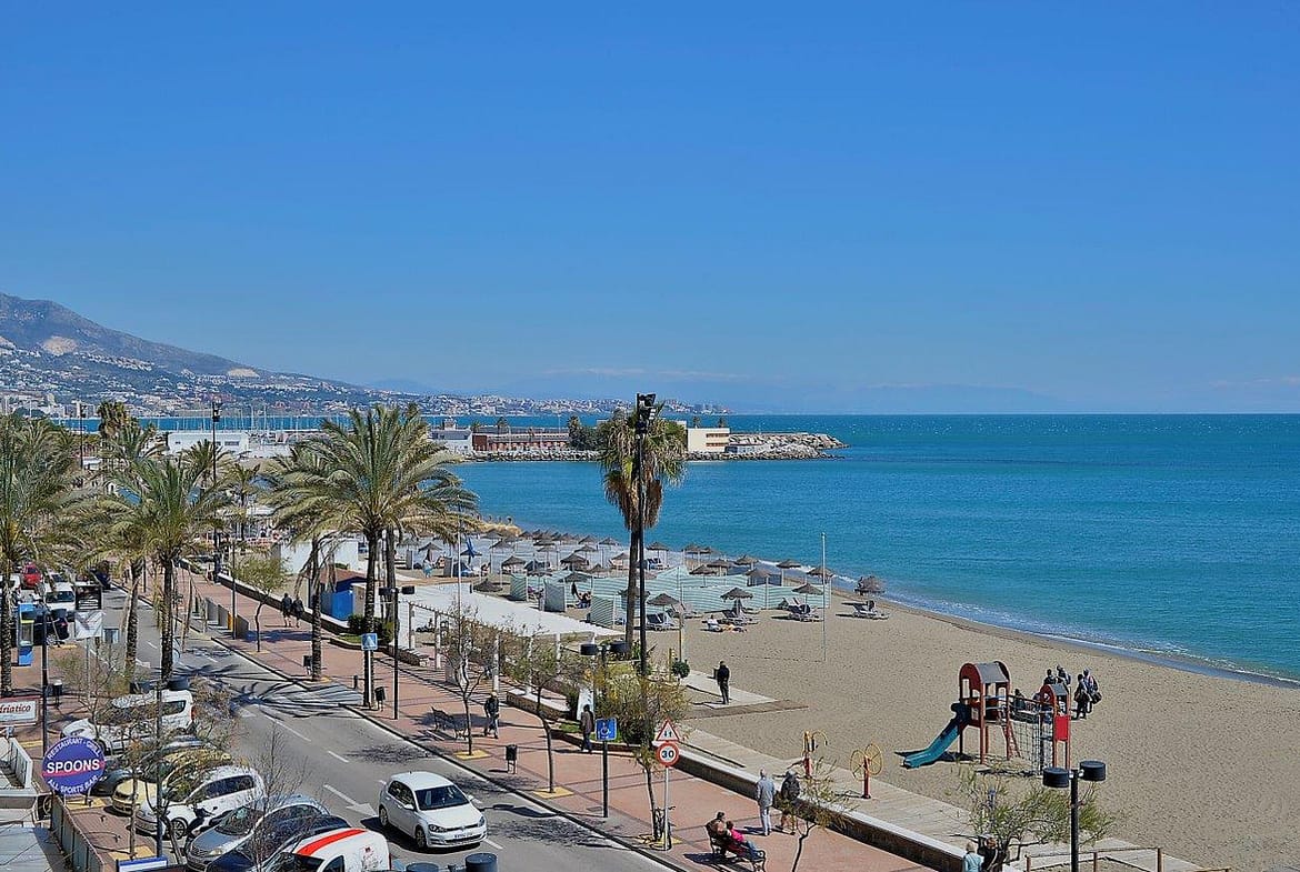 A truly luxurious apartment located on the first line of the beach in the charming old town district of Fuengirola. This spacious and bright apartment offers not one, but two terraces! One terrace provides breathtaking 180° panoramic sea views, while the other faces southwest, ensuring you can bask in the afternoon and evening sun with lovely views of Plaza Picasso and the surrounding mountains.