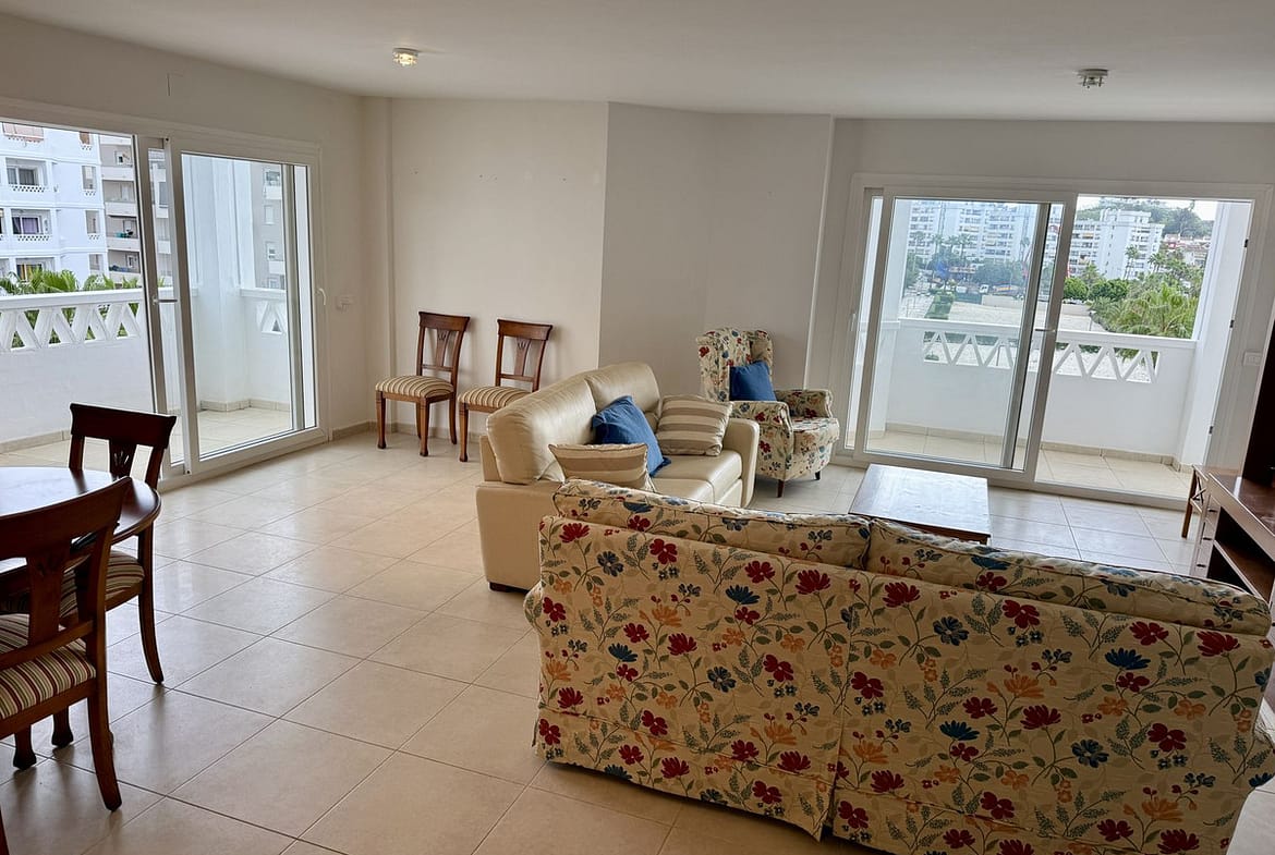 A spacious 4 bedroom apartment situated in the area of La Campana, with plenty of amenities right on the doorstep and just a 10 minute drive to the beach. The apartment is perfect for permanent living or for a family due to the ample space that it offers. The living room is large and bright, with two big French windows that lead out on to two terraces. This space easily accommodates a dining area as well. There is a fully fitted kitchen with a separate laundry room. The bedrooms are situated off to one side and all are fitted with built-in wardrobes. The Master bedroom has an ensuite bathroom, with the others sharing a family bathroom. An underground parking space is included in the price.
