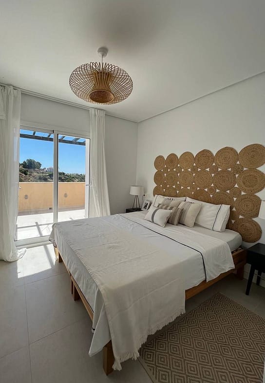 Beautifully presented apartment with open mountain and lake views in Arcos de La Quinta, Benahavís comprising an open-floor plan living/dining room with a fully fitted and equipped kitchen, with access to a terrace offering stunning views; spacious master bedroom with en-suite bathroom; further en-suite bedroom; two good-sized guest bedrooms with fitted wardrobes and sharing a bathroom. Features: air conditioning and heating throughout. The terrace offers wonderful views over the mountains and the lake. The community is residential and peaceful, with community parking and pool area.