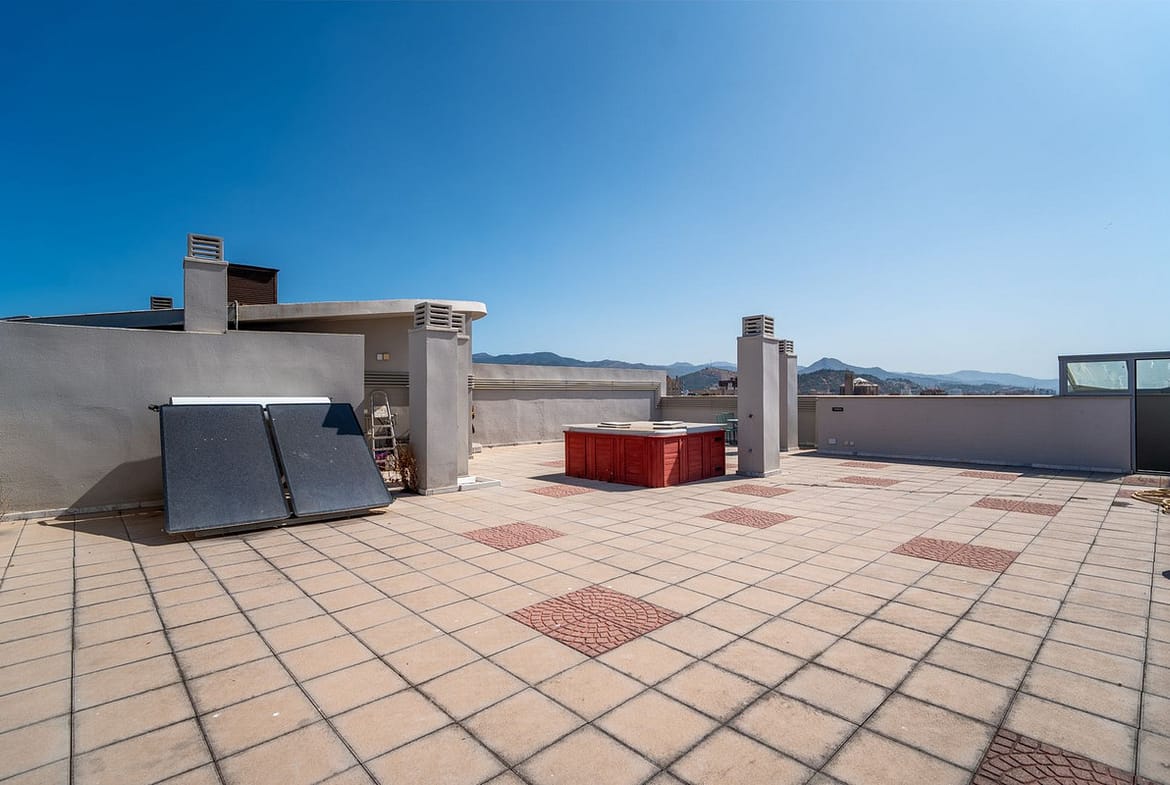 The spacious living-dining room, filled with natural light, opens onto a magnificent 30 m² terrace designed for enjoyment: whether for breakfast in the sun, dinner at sunset or simply relaxing. From this terrace, you can access a 200 m² private solarium, a unique space with breathtaking panoramic views of the city of Malaga, ideal for creating a chill-out area, installing a small swimming pool or urban garden.