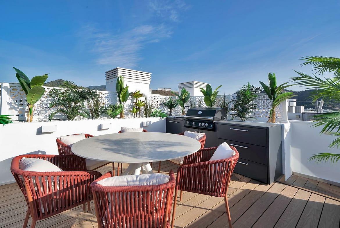 – Stunning Rooftop Paradise: Features an expansive solarium with a chill-out area, a fully equipped outdoor kitchen with a barbecue, a private sunbathing area, and a spacious terrace with panoramic views.