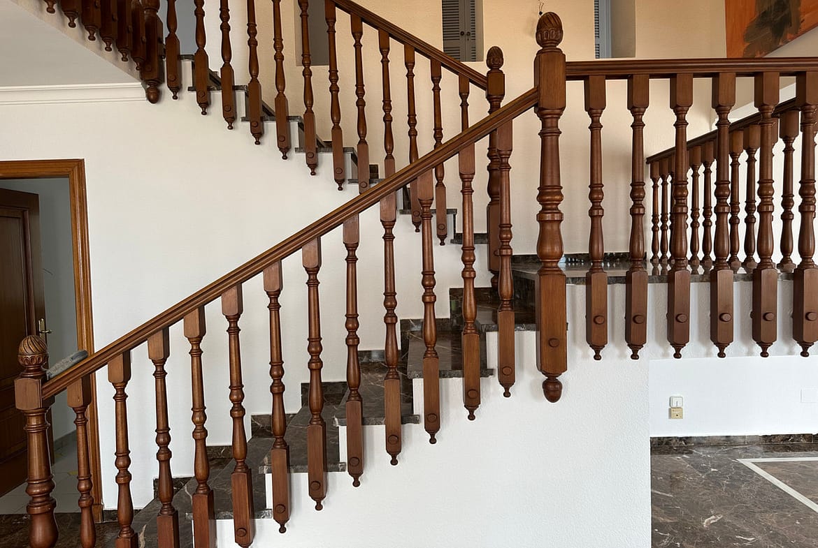 Accessible via a unique open staircase cantilevered over the main floor with an elegant varnished wood balustrade.