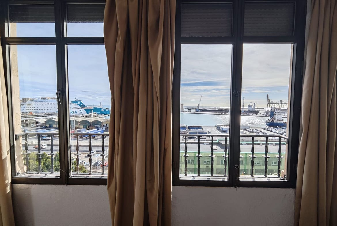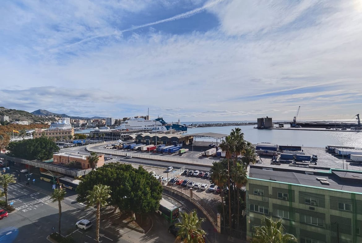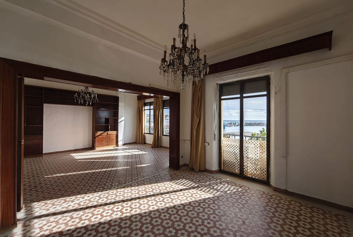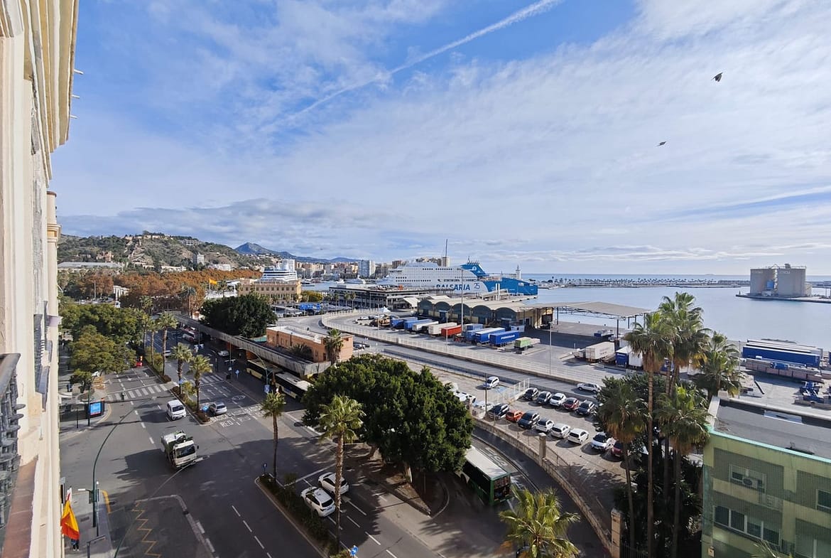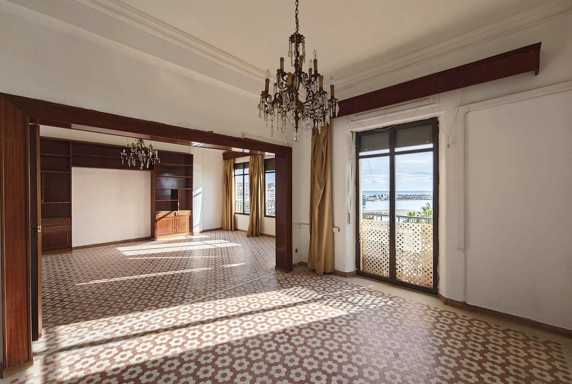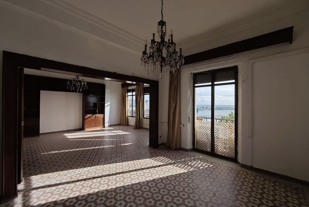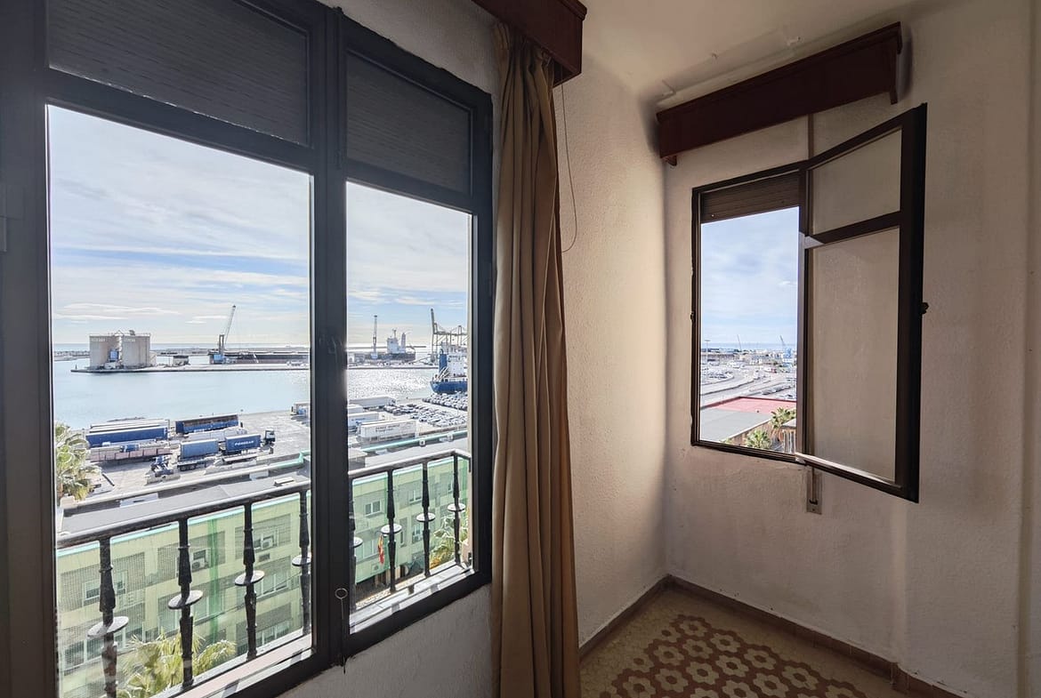 spectacular stately home with large windows and open views of the port of Malaga. Located in one of the prime areas of Malaga, this property stands out for its elegance and enormous potential for renovation. It retains its original charm, with a beautiful hydraulic floor in perfect condition, high ceilings, moldings, large windows and views of the Mediterranean Sea.