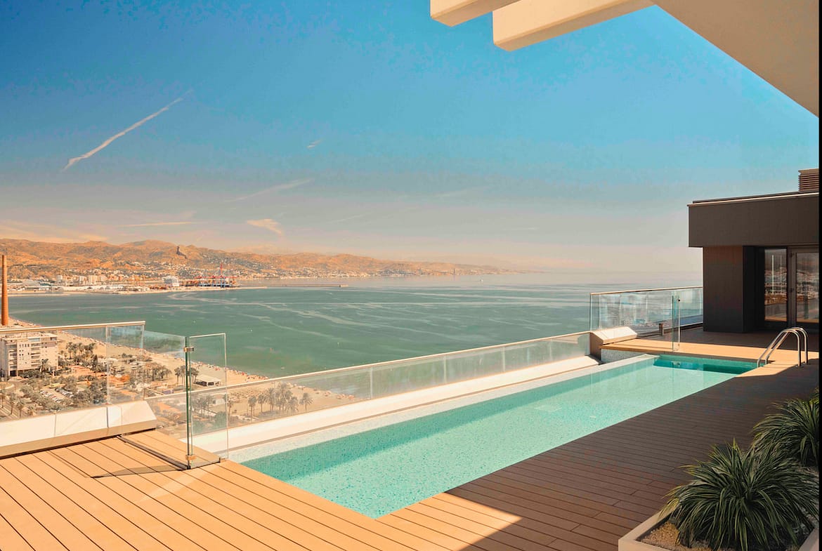 With panoramic frontline beach views, this four-bedroom apartment is a true masterpiece of design, featuring an open-plan layout where every space is bathed in natural light and offers breathtaking views of the Mediterranean coast, the city of Málaga, its impressive shoreline, and the surrounding mountains. With its generous 500 sqm of living space, this residence truly feels like a villa in the sky.