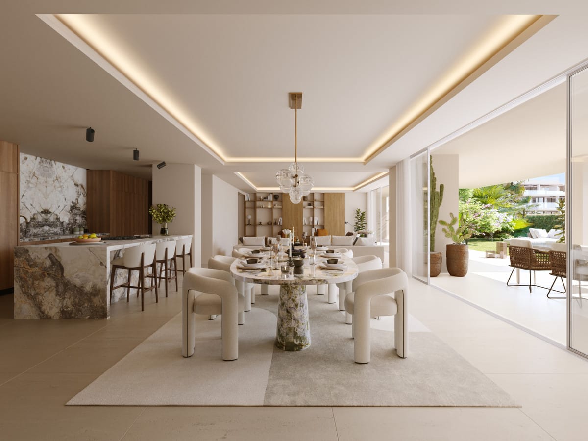 These luxury residences in Marbella offer a myriad of versatile living options tailored to sophisticated tastes. Ground-floor apartments unfold with private gardens and extensive terraces, first-floor living spaces captivate with fabulous terraces, corner penthouses provide exclusive first-floor vistas, and central penthouses offer commanding views of both sea and mountains. Each residence is generously proportioned, featuring expansive terraces and solariums equipped with private pools, setting a new standard in luxury living.