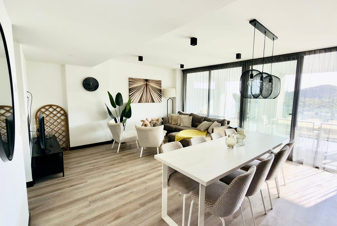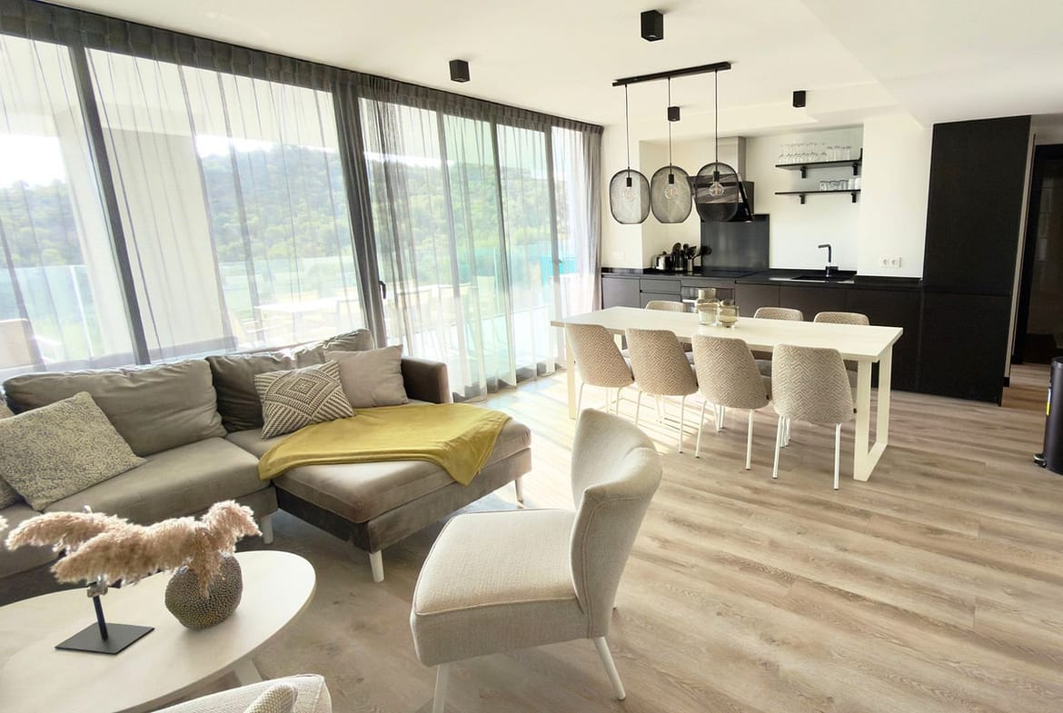 Elegant apartment located on the second floor, offering stunning views of the sea and green hills — an ideal holiday home for a large family.