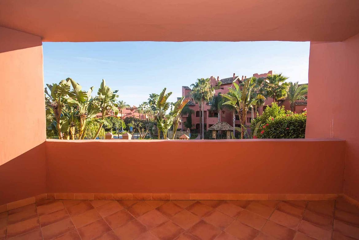 Fantastic 201m2 built,183 m2 usable ground floor south oriented apartment (elevated 2 meters above ground floor), fully furnished in a new beach side urbanization located in the heart of the “New Golden Mile”, close to the 5 stars Hotels Ikos & Las Dunas. The property offers an entrance hall, 4 bedrooms and 3 bathrooms (2 of them en-suite with jacuzzi, a large fully fitted kitchen, a living/dining room with access to a large covered 104 m2 terrace with beautiful views over the tropical garden. The entire apartment is finished to the highest standards, (cream marble, granite and terracotta in the grounds), telephone, satellite T.V., air conditioning hot & cold and alarm. The property also enjoys a useful utility room beside the kitchen, and a private parking space in the communal underground garage. Furthermore, the complex offers 18 hours security per day and a set of luxury equipments such as 2 superb swimming pools (one outside and the other one inside and heated in the underground), gymnasium, sauna and social room.