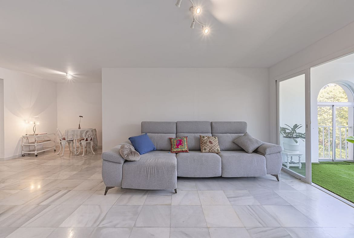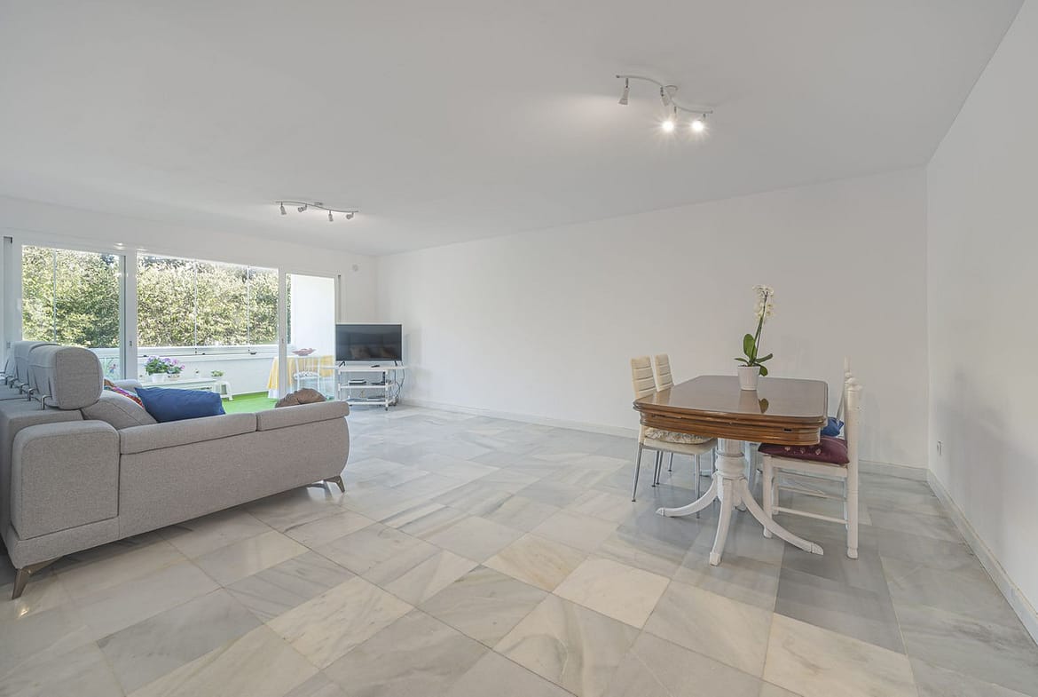 Spacious flat to refurbish in Nueva Andalucia, close to Centro Comercial Plaza and walking distance to Puerto Banus. Discover a unique option! A spacious flat, designed on one floor, which is characterised by its functional and comfortable layout. Upon entering the property, you will be greeted by a spacious entrance hall leading to an independent kitchen fully equipped with appliances and a laundry room. The living-dining room is bright and offers direct access to an enclosed terrace with open views. The flat has four generously sized bedrooms, all of them equipped with fitted wardrobes offering ample storage space. Furthermore, there are two complete bathrooms, some of them en suite. This property has many possibilities for refurbishment.