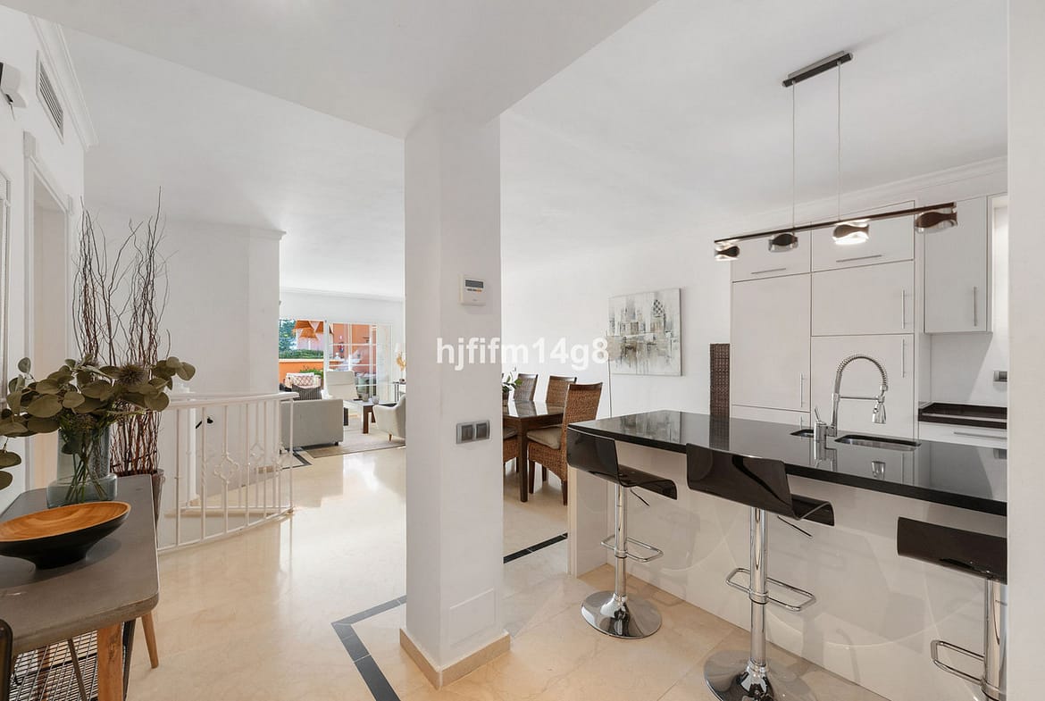 This exceptional 4 bedroom ground floor duplex apartment for sale is located in the highly desirable urbanisation of Andalucia Alta, at the entrance of Nueva Andalucia, one of the most sought-after residential areas in the Marbella area. The property forms part of a well-established and beautifully maintained community, featuring mature landscaped gardens, a children’s playground and an attractive communal swimming pool area. Andalucia Alta is particularly appealing to buyers due to its peaceful setting combined with a prime, walkable location close to all amenities, making it an excellent option for both permanent living and investment purposes.