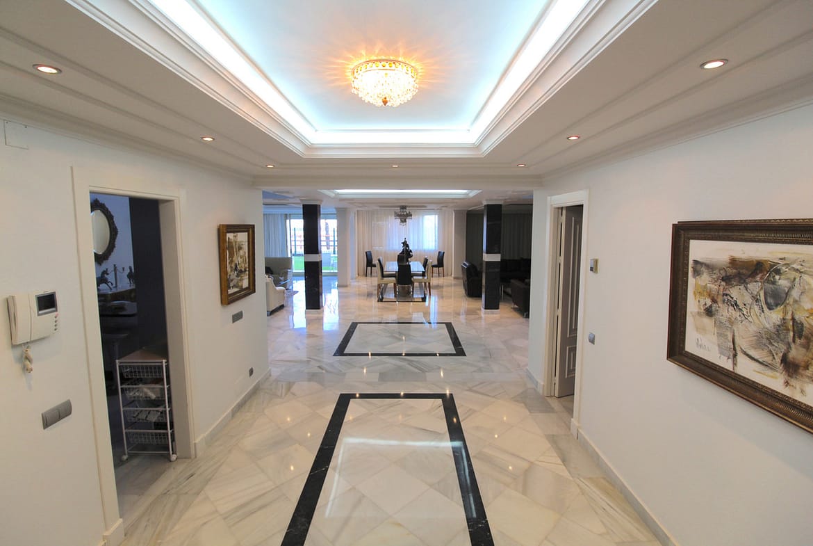 Stunning 4 bedroom duplex apartment in a beachfront urbanisation just a few steps from the heart of Puerto Banus. The apartment is located directly to the beach, with stunning panoramic sea and beach views. The property has 4 ensuite bedrooms with fitted wardrobes. There is a spacious living area with a dining area and partially open kitchen. The kitchen is completely equipped. The gated development has 24h security, underground parking, beautiful communal gardens and swimming pool, as well as direct access to the promenade and beach.