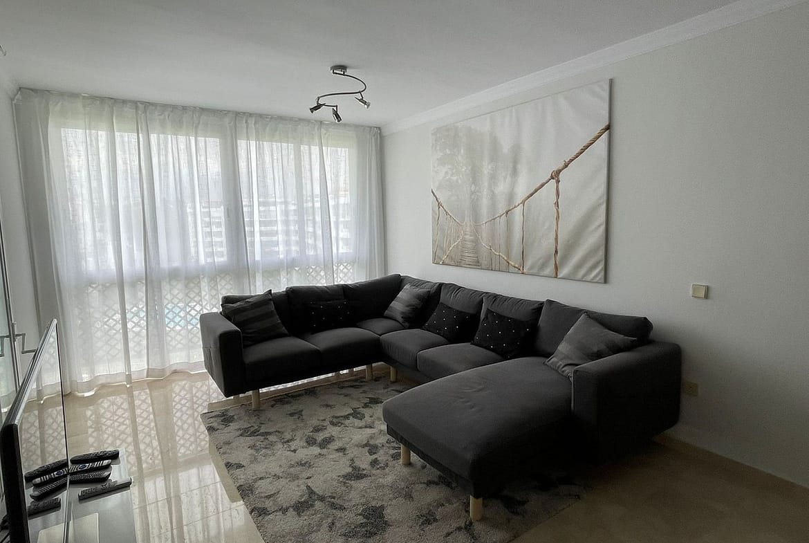 Ideal location for this 4 bed duplex penthouse property located in the heart of the famous Puerto Banús, surrounded by shops, bars and restaurants and with beaches only a few minutes walk away, no need for a car. The complex offers mature communal gardens, 3 swimming pools and tennis courts. The accommodation consists of 4 bedrooms with 4 bathrooms (3 en-suite) and can therefore accomodate 8 people. Downstairs is distributed in a large livingroom-diningroom with access to a covered terrace overlooking the beautiful gardens and pools, a fully fitted kitchen with utility room (with washer and dryer), a master bedroom with en-suite bathroom with access to the terrace and another bedroom with double bed with seperate bathroom. Upstairs you will find a large master suite which counts with its own livingroom with satellite TV, en-suite bathroom and large windows opening up to the wrap-around solarium with panoramic views, and another very large bedroom with two small beds and en-suite bathroom. The property comes with a private parking space and counts with air conditionning throughout the whole apartment, satelitte TV with large flat screen TVs upstairs and downstairs, (for rentals: wifi and travel cot & high chair for a baby).