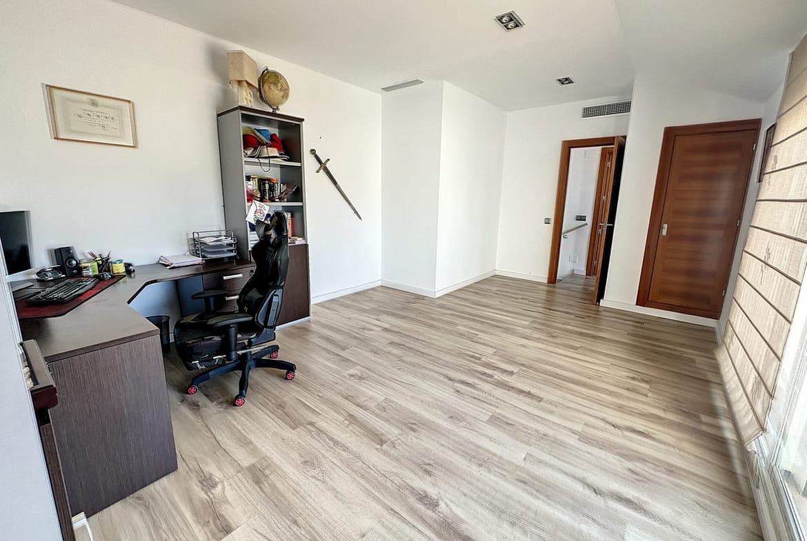 The upper level includes a spacious master suite with an en-suite bathroom and plenty of wardrobes. A generous multipurpose room on this level can serve as a fourth bedroom, home office, gym, or secondary lounge — making the layout flexible and practical for modern family living. This level also has a large private terrace offering beautiful panoramic views of the mountains and warm late-afternoon sunshine.