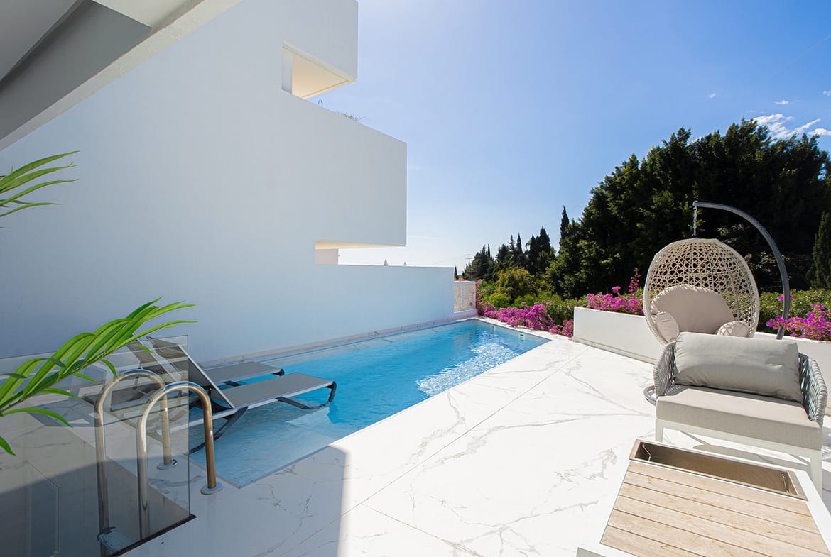 One of the most attractive features of the home is its expansive south-facing terrace of approximately 70 m² with its own private pool, a truly unique feature that provides abundant natural light throughout the day and offers the perfect setting for outdoor dining, relaxation, or hosting guests in Marbella’s year-round Mediterranean climate.