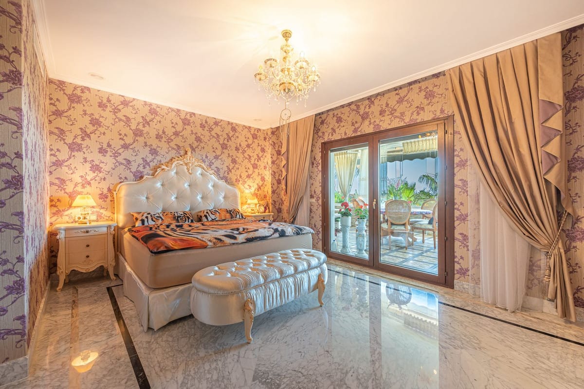 The apartment offers 4 generously sized bedrooms with en-suite bathrooms and a bright living area that opens onto a large south-facing terrace with sea views. The terrace is also accessible from the master suite and a second bedroom currently used as an office.