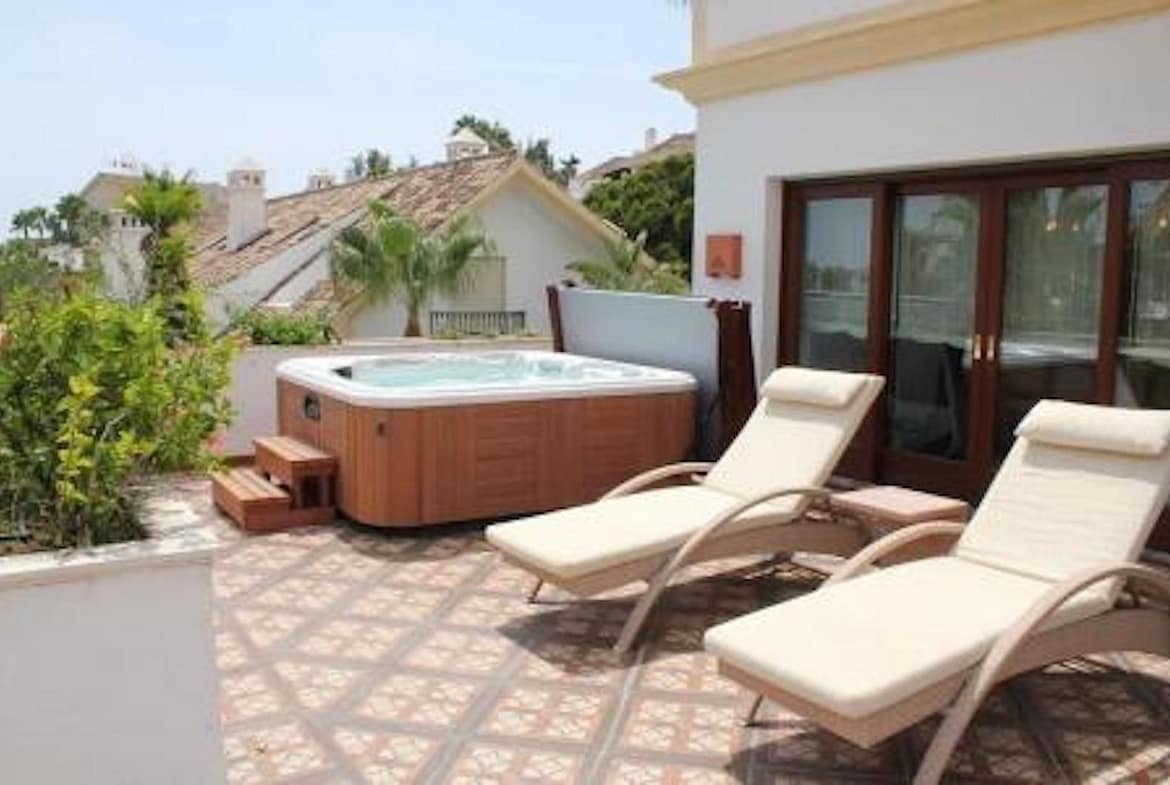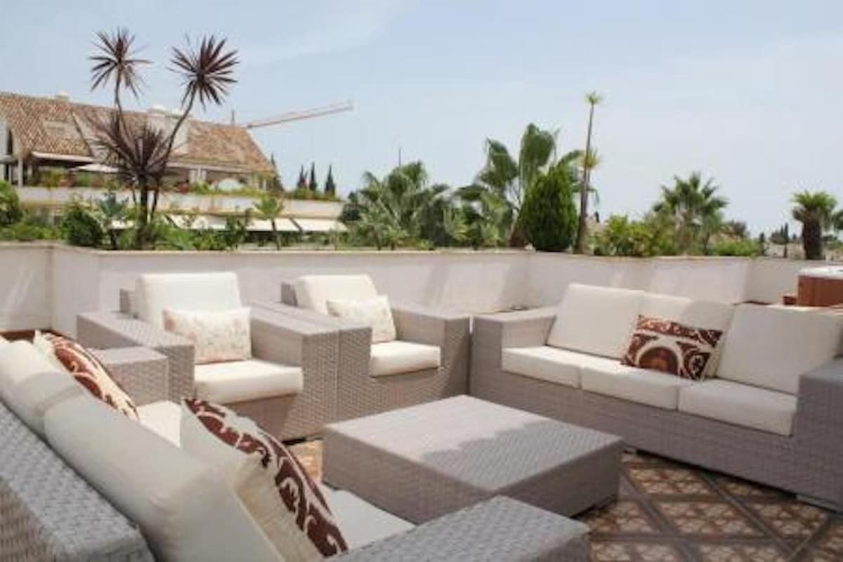 Luxury 4 bed duplex penthouse in a prime location. Among the features are air conditioning (cold/hot), under floor heating throughout, marble floors, a fully equipped kitchen and a wonderful fireplace. Also there is an intercom and alarm system. This exceptional penthouse benefits from a jacuzzi and 2 private subterranean parking spaces as well as a storage room.
