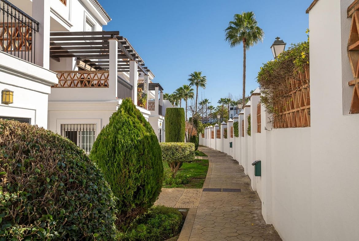 Townhouse for sale in Lauro Golf one of the most prestigious golf courses in Malaga. The property is distributed over three floors. On the ground floor there is a fully equipped kitchen, a toilet, a large living room with a fireplace that leads to a private terrace. On the upper floor there are two en-suite bedrooms and a 3rd bedroom. On the top floor there is a 4rd bedroom with en-suite bathroom with a terrace and a solarium with wonderful views of the golf course. Private parking space and storeroom. Communal gardens a pool. A unique purchase opportunity not to be missed.