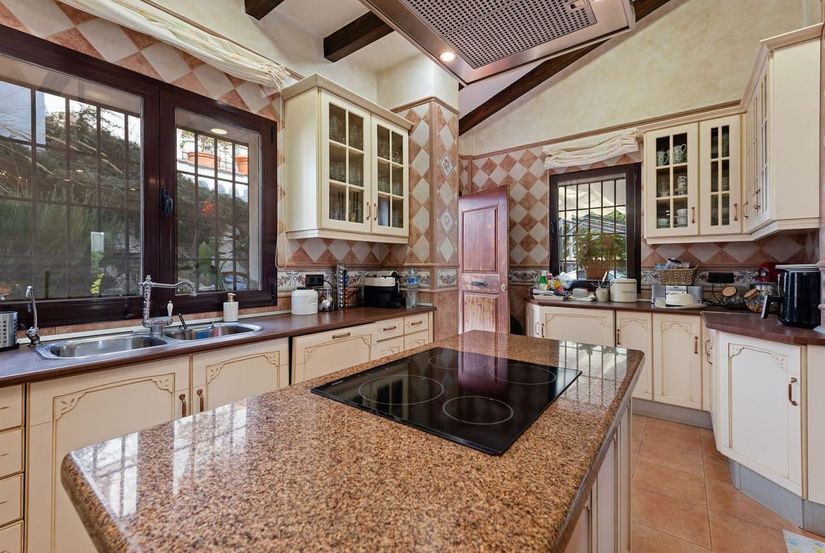 It showcases all the beauty of Andalusian architecture: handmade tiles, exposed wooden beams, cozy patios, and plenty of natural light throughout.