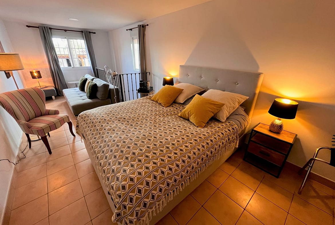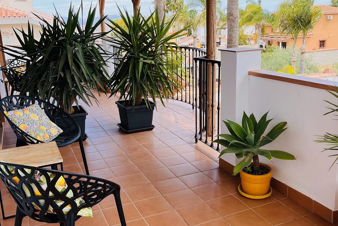 Renovated in 2022 while retaining original character features, the property now comprises four bedrooms, each with its own en-suite bathroom. The villa is bright and spacious, with lovely open views towards the Sierra de Mijas mountains.