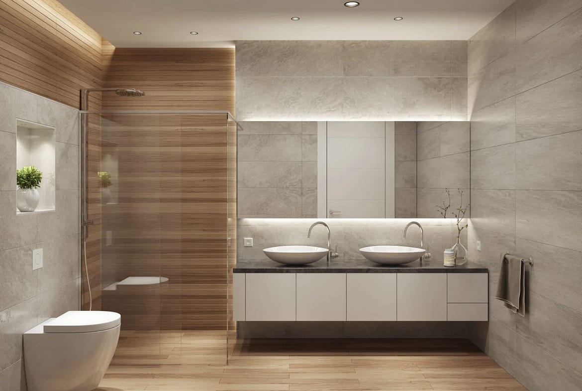 – Bathroom walls with COVERLAM plates (GRESPANIA) 2700X1200 (Color to choose)