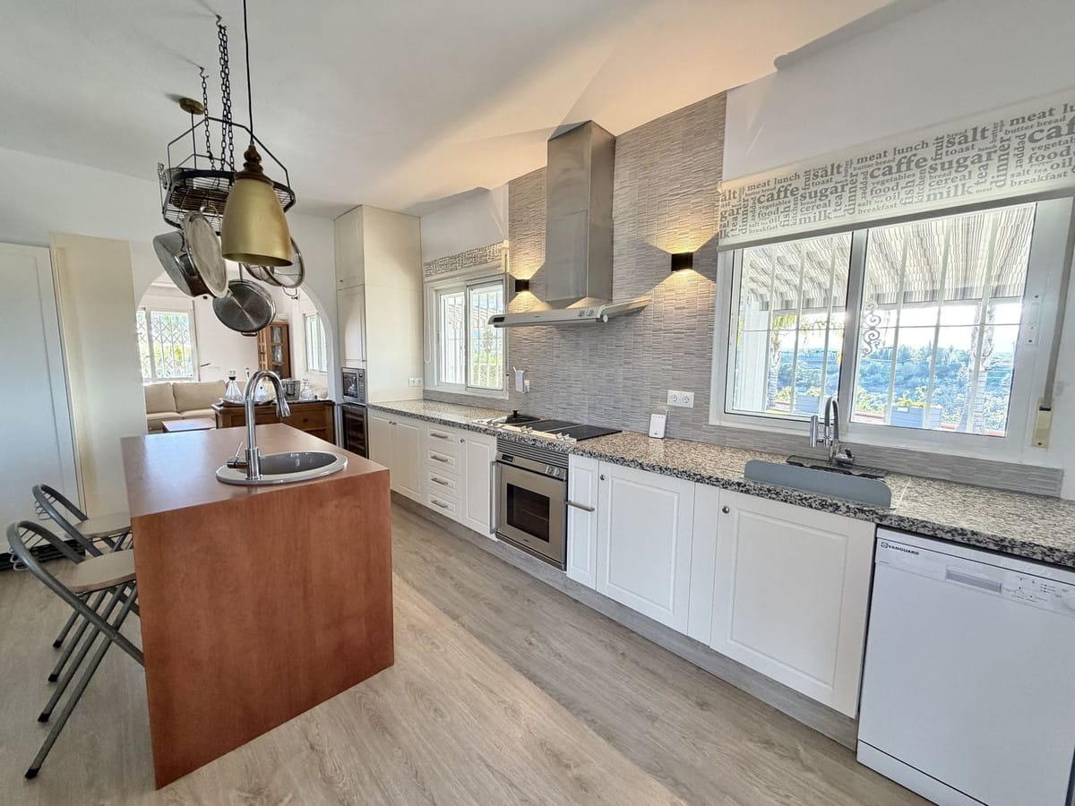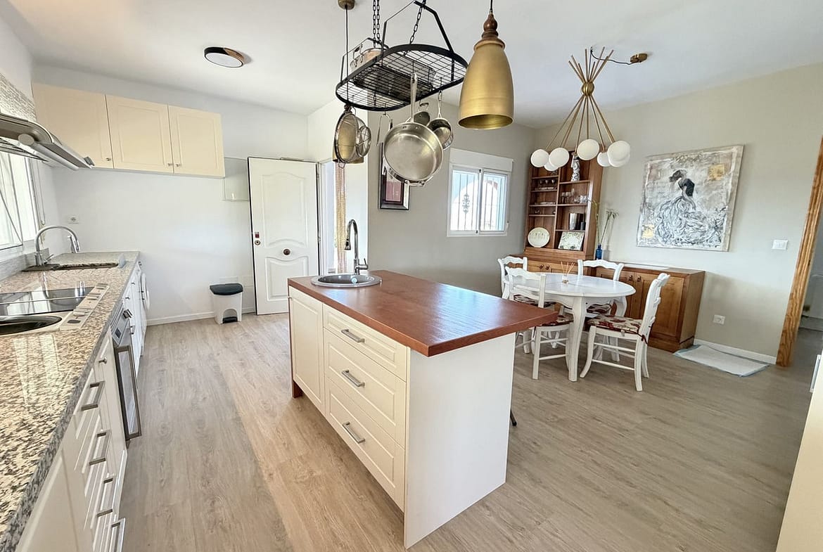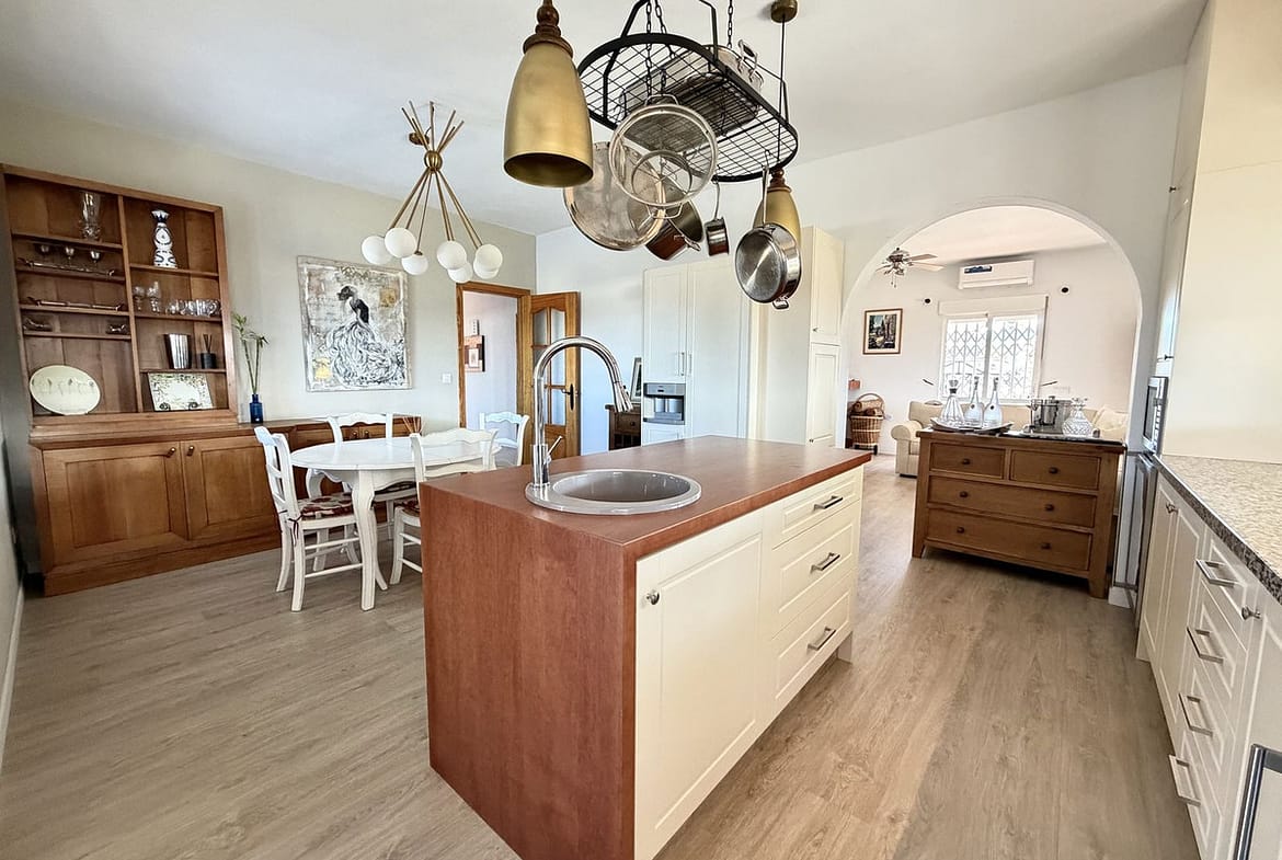Outside, the property boasts a well-maintained garden, private swimming pool, and covered terrace, ideal for enjoying the Mediterranean climate. Additionally, there is a large workshop that can be converted into guest accommodation, as well as a carport and several storage rooms.